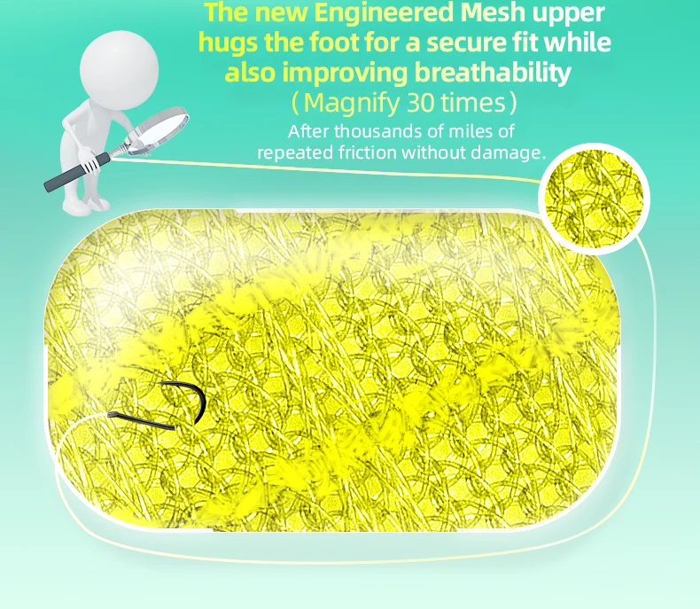 A nova parte superior em malha projetada abraça o pé para um ajuste seguro, ao mesmo tempo que melhora a respirabilidade