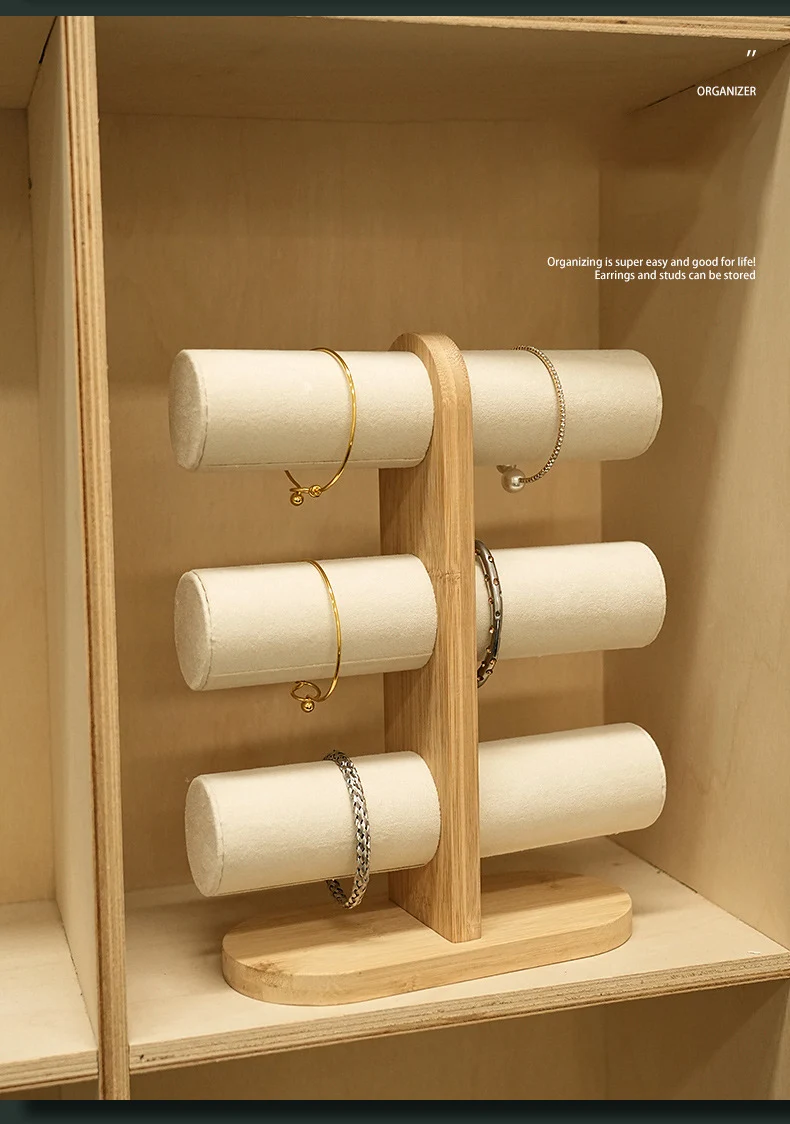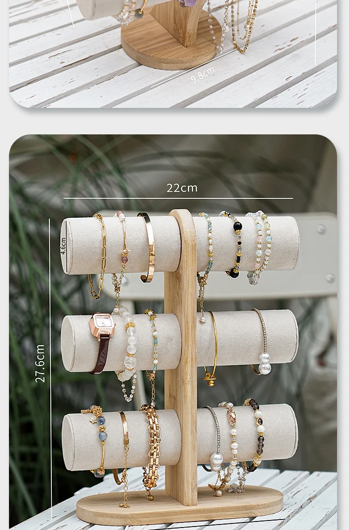 - > Organizador de rack de três camadas, madeira, jóias, pulseira, armazenamento, corrente, relógio, suporte rígido, mulher, montar