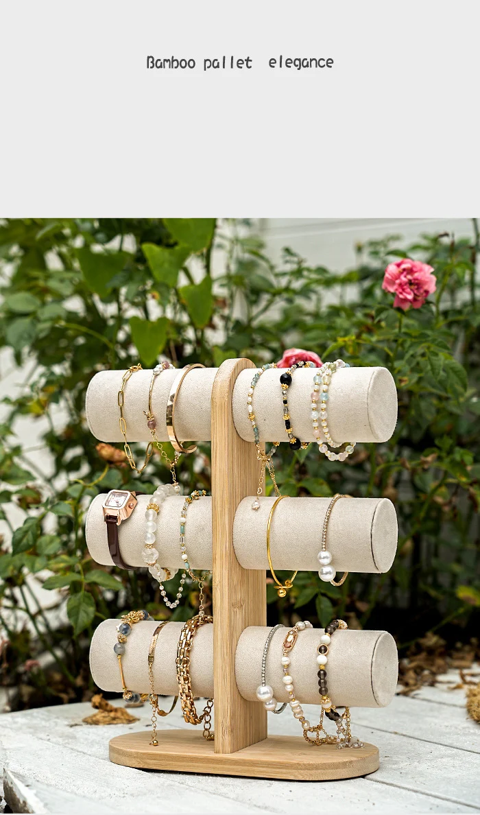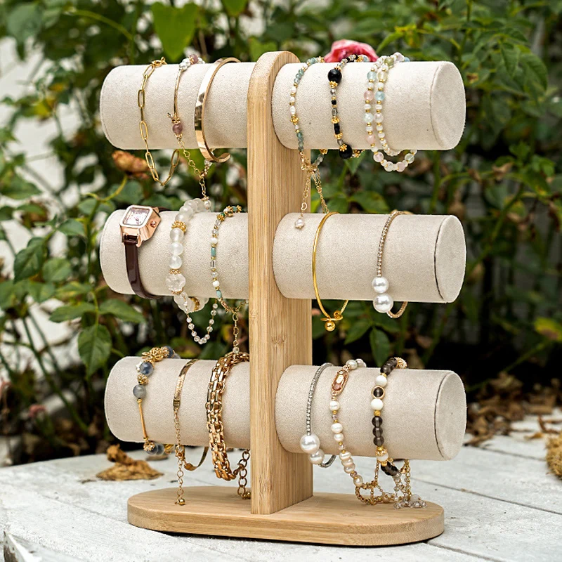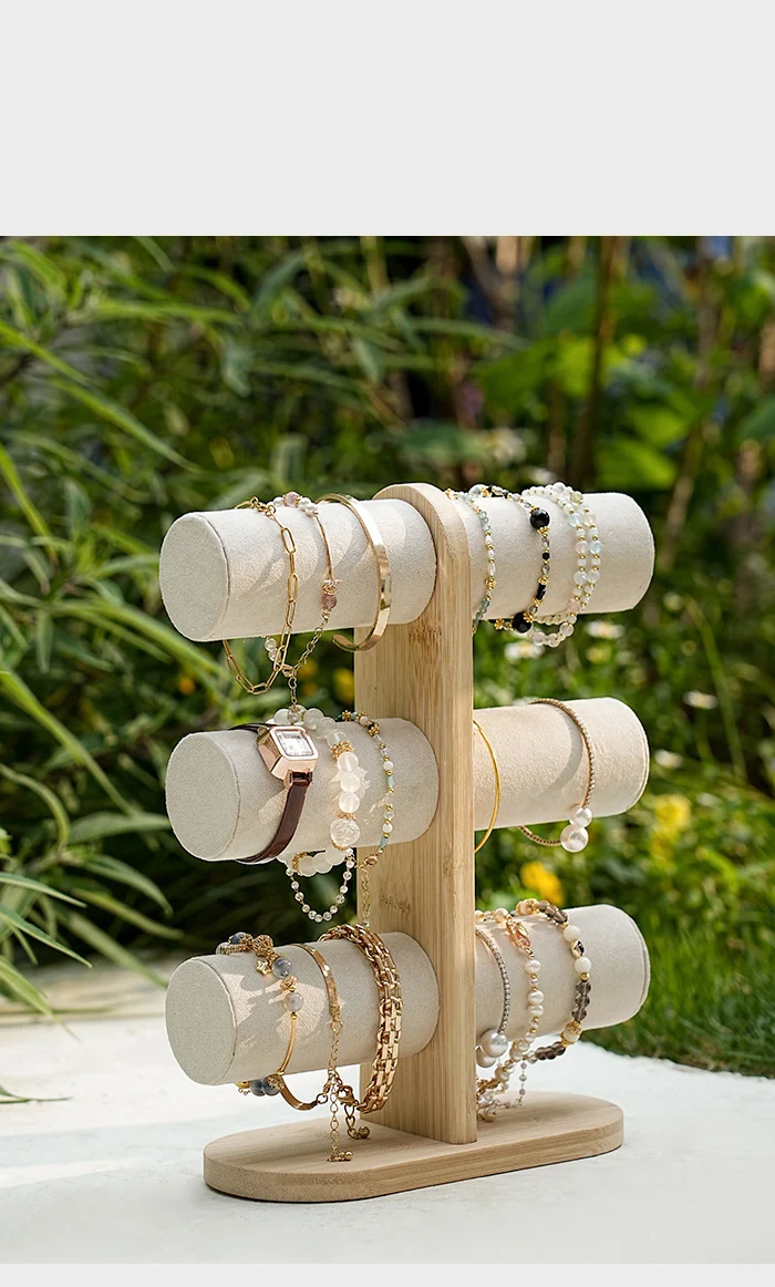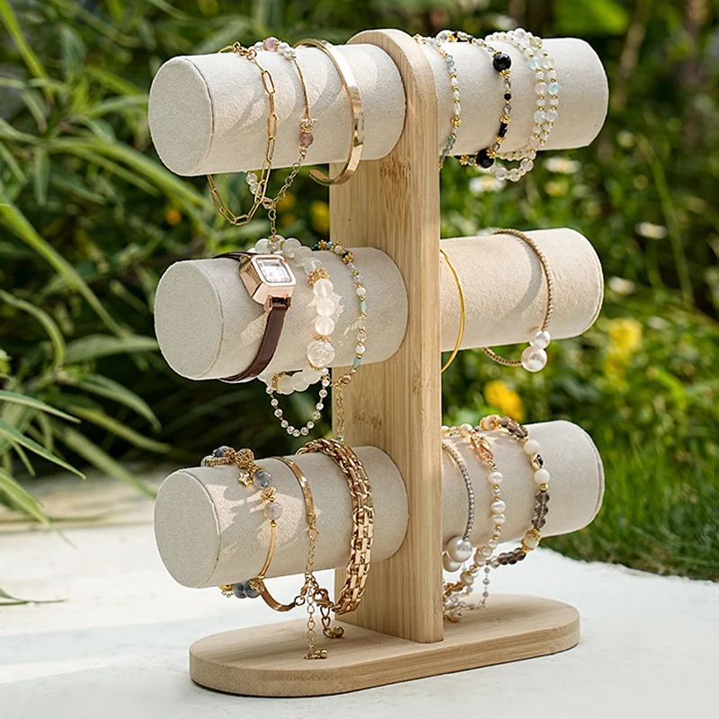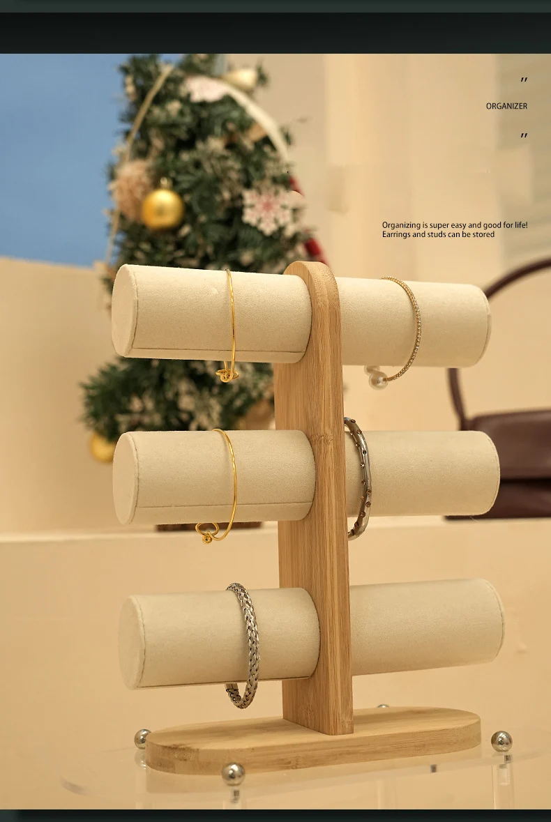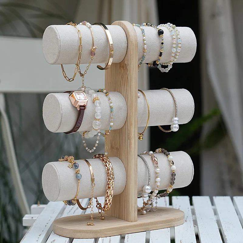 Organizador de rack de três camadas, madeira, jóias, pulseira, armazenamento, corrente, relógio, suporte rígido, mulher, montar