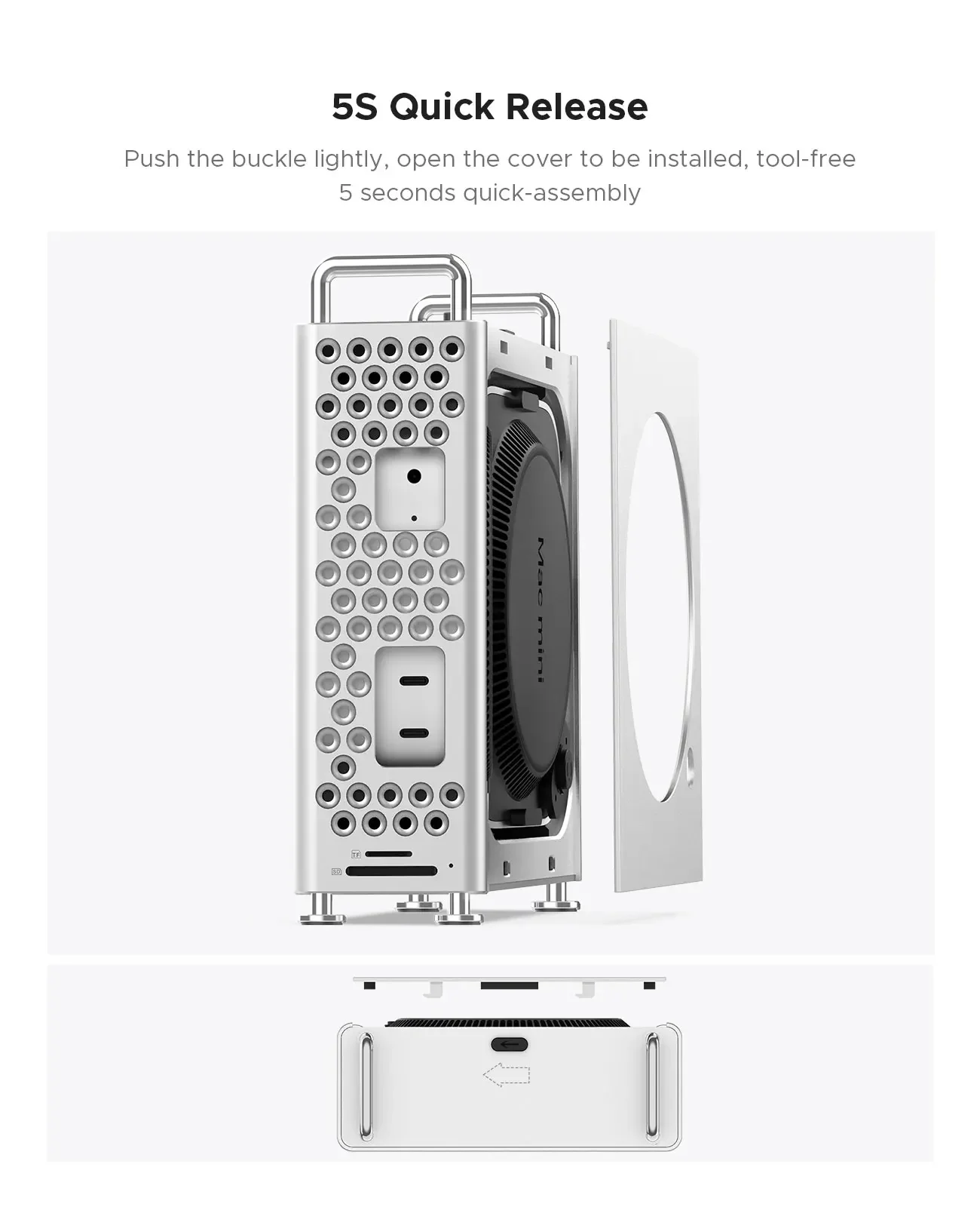 ORICO pensou sobre este problema durante a P&D e design, o sinal sem fio do MacMini é emitido através do plástico na parte inferior e o material do MacMini é liga de alumínio, o design do ORICO é que a parte plástica do MacMini está expposta o tempo todo, então isso não afetará o sinal; e não afetará os dutos de ar de dissipação de calor.