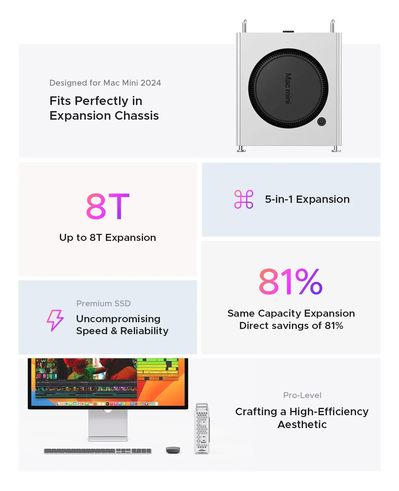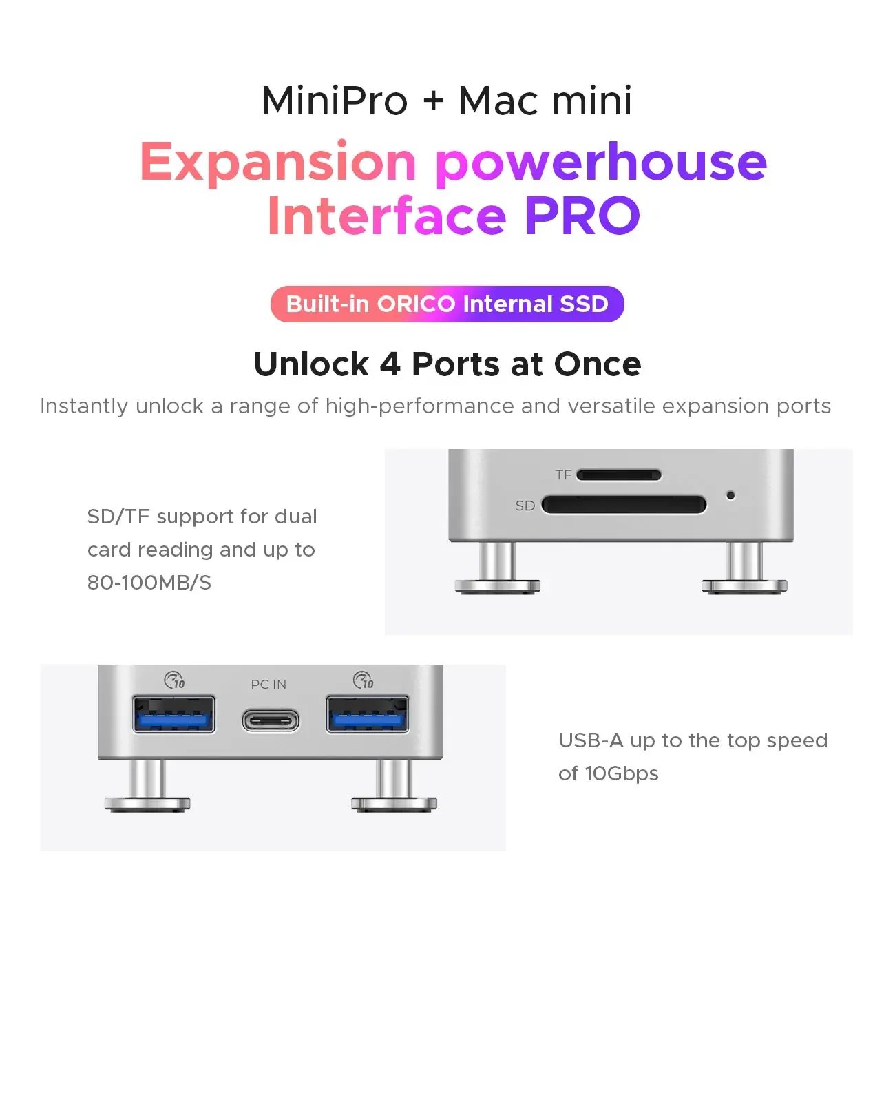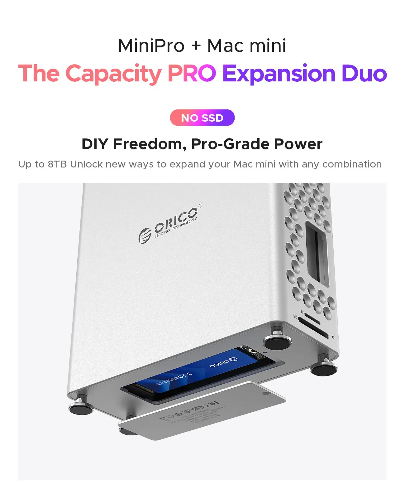 - > Orico mini pro doca de armazenamento expansão 10gbps estação de acoplamento para mac mini m4 pro m.2 ssd gabinete mac acessórios