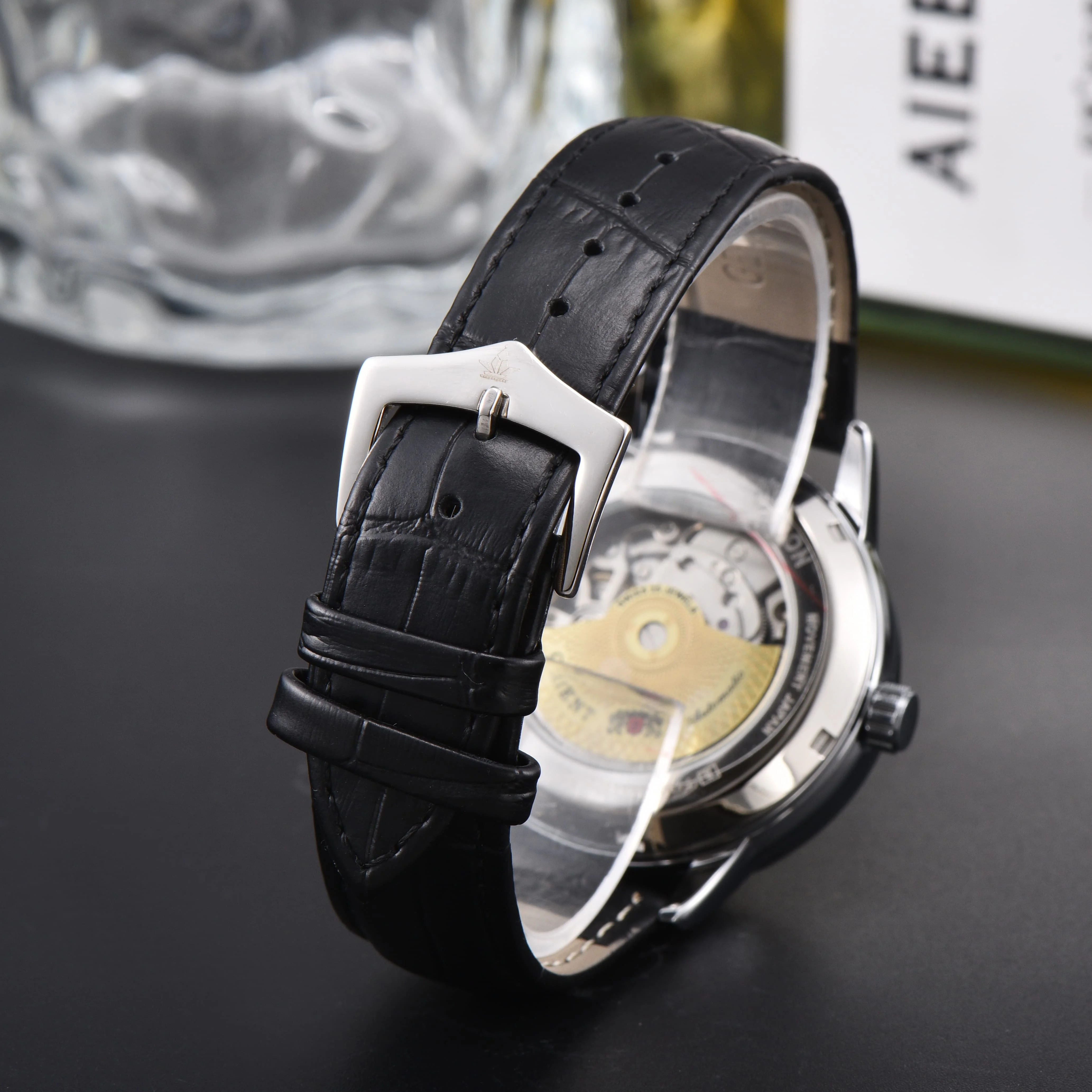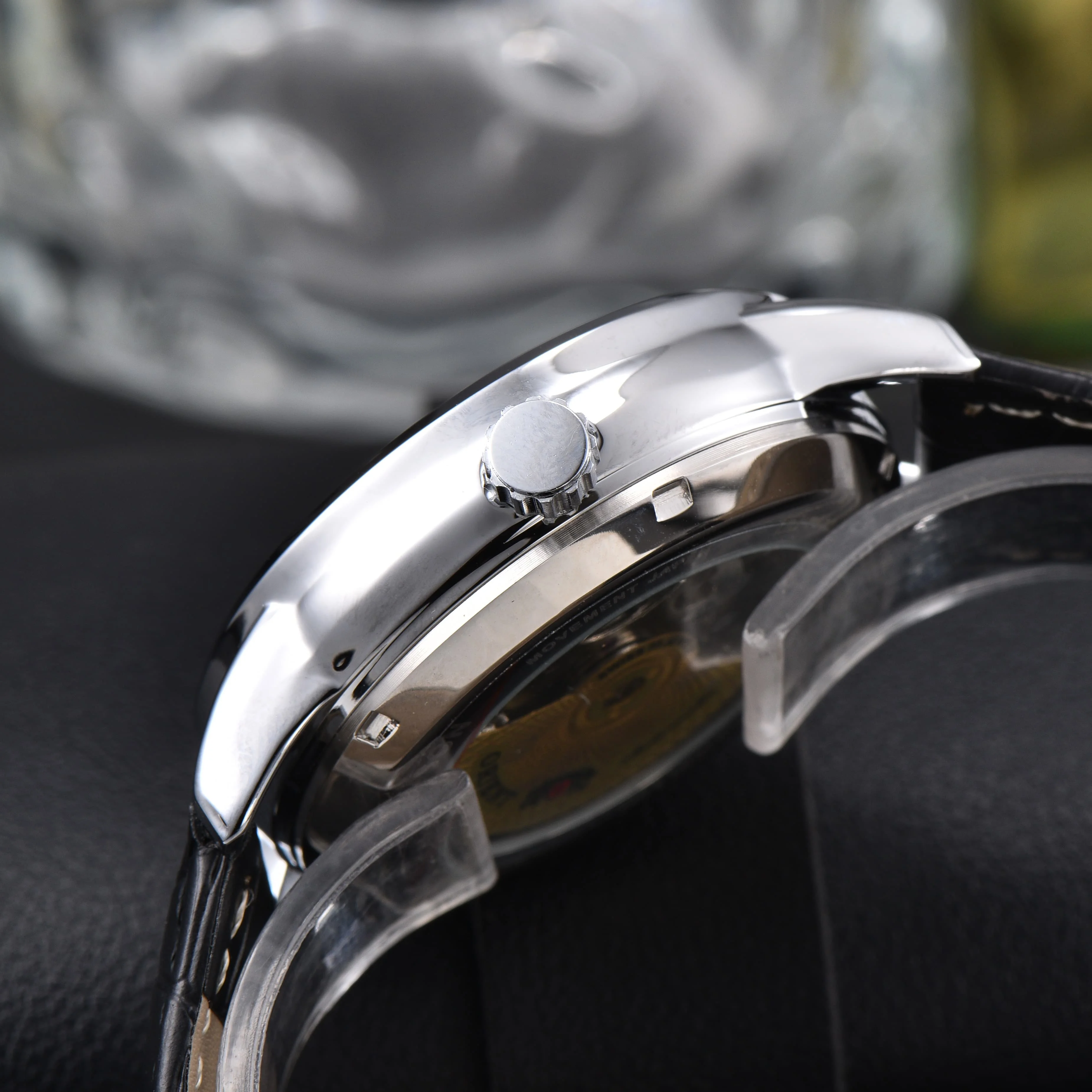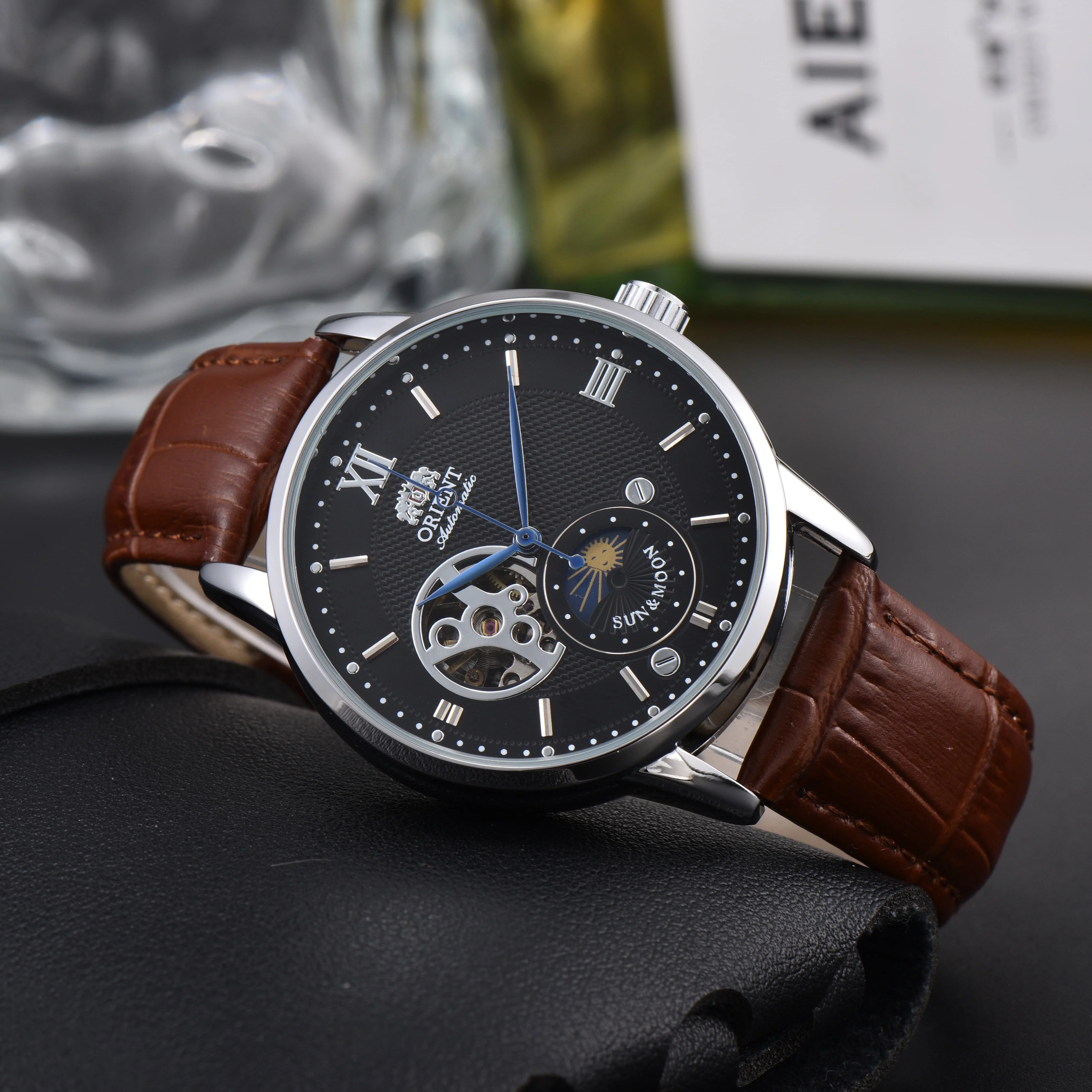 - > Orient sun & moon semi esqueleto relógio automático masculino mostrador branco pulseira de couro preto cristal safira 50m à prova dwaterproof água vestido relógio