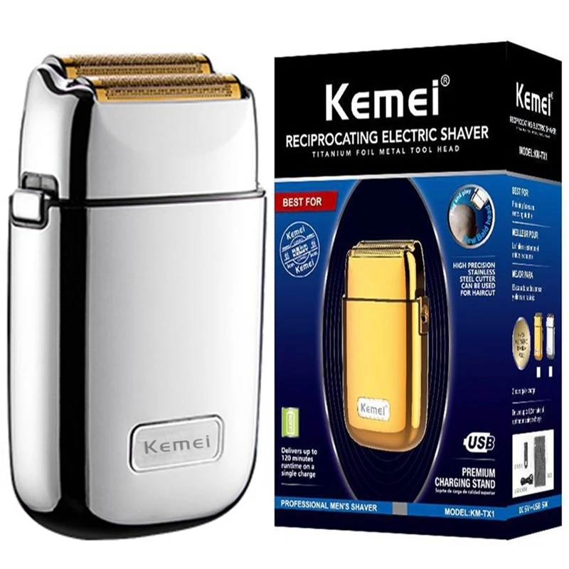 Original kemei recarregável metal habitação pro barbeador elétrico para homens cabelo barba navalha elétrica barbear careca