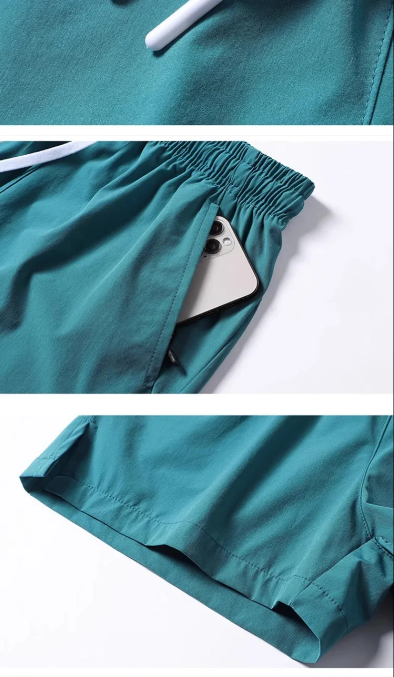 Estes shorts de verão são feitos de seda de gelo, proporcionando uma secagem rápida após o uso, tornando-os perfeitos para atividades ao ar livre.