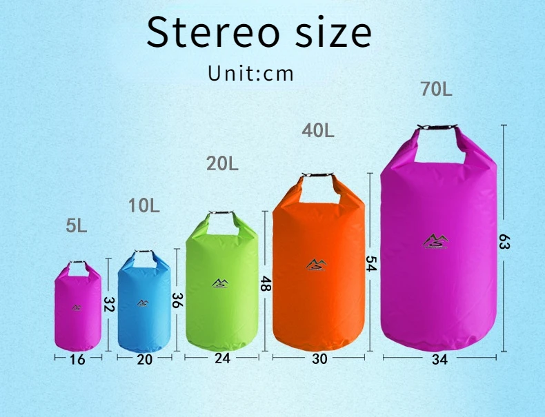 Outdoor impermeável seco Sack, Flutuante engrenagem sacos para passeios de barco, pesca, rafting, natação, grande capacidade de armazenamento Pack, bolsa, 5-70L