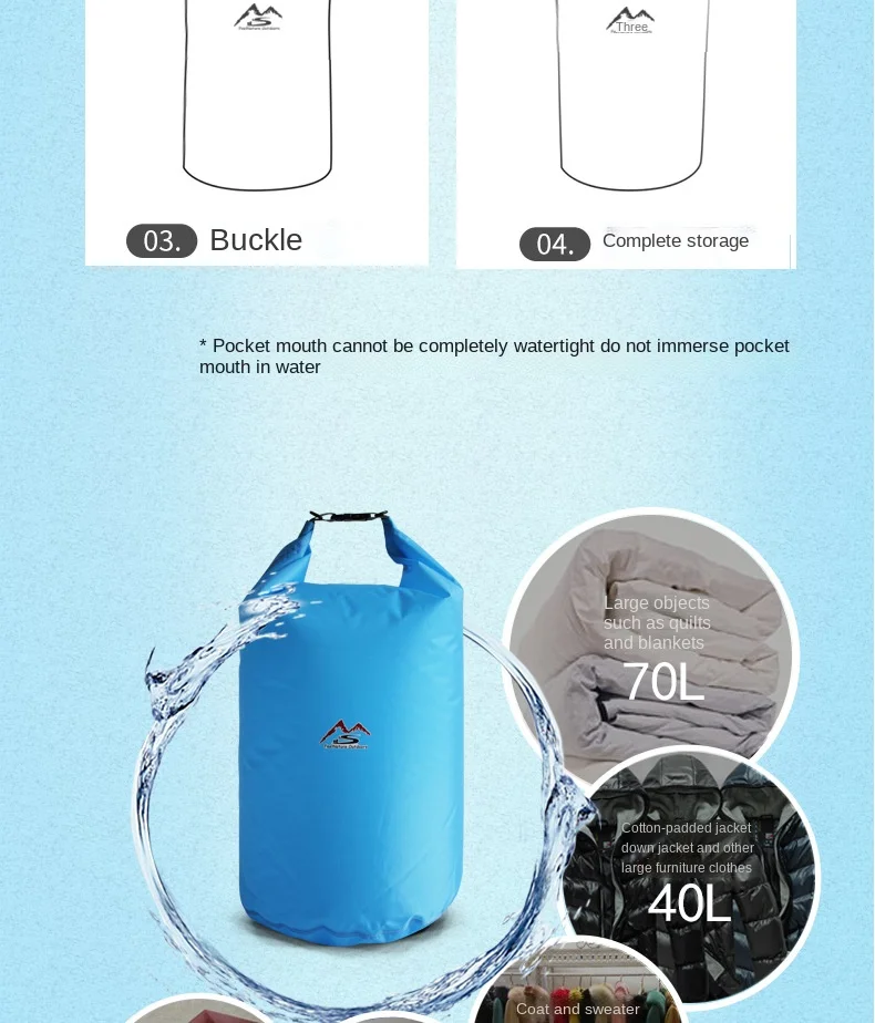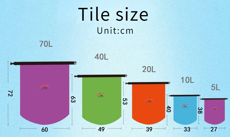 - > Outdoor impermeável seco Sack, Flutuante engrenagem sacos para passeios de barco, pesca, rafting, natação, grande capacidade de armazenamento Pack, bolsa, 5-70L