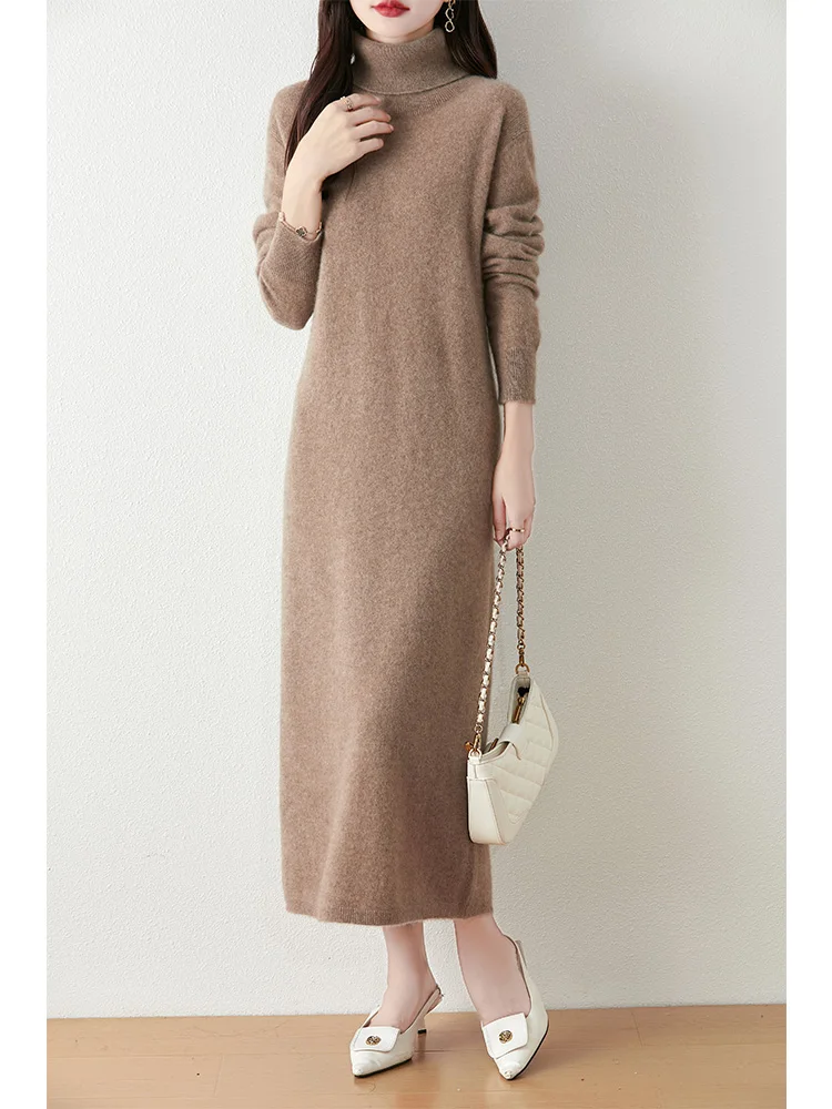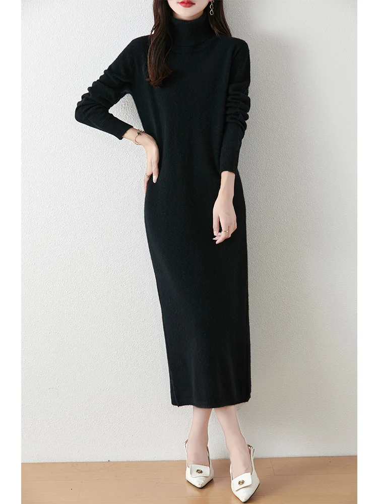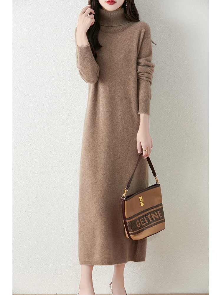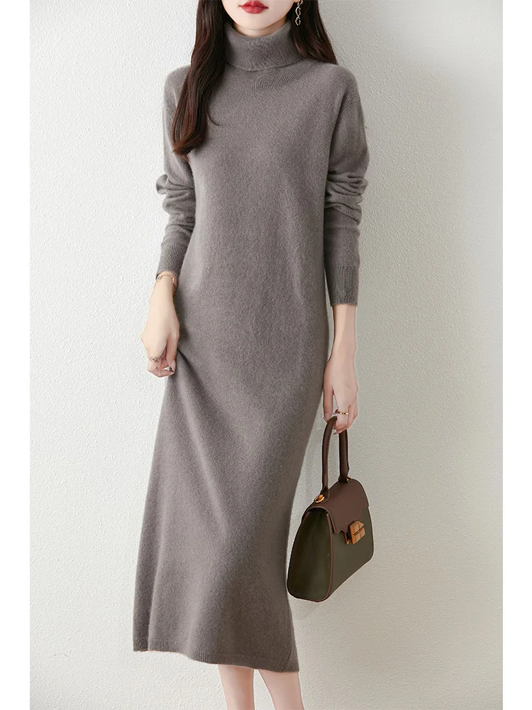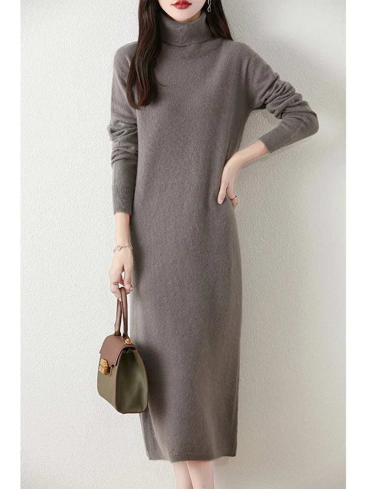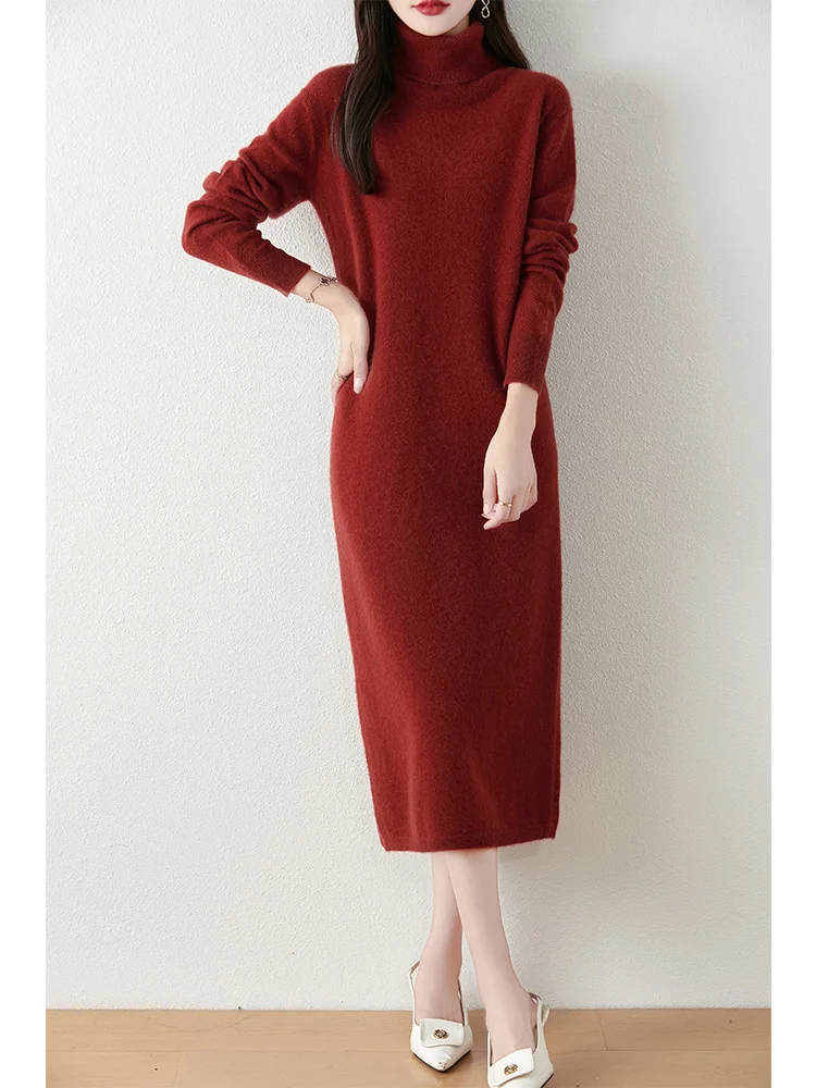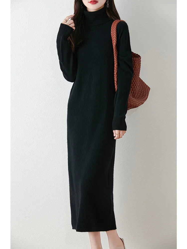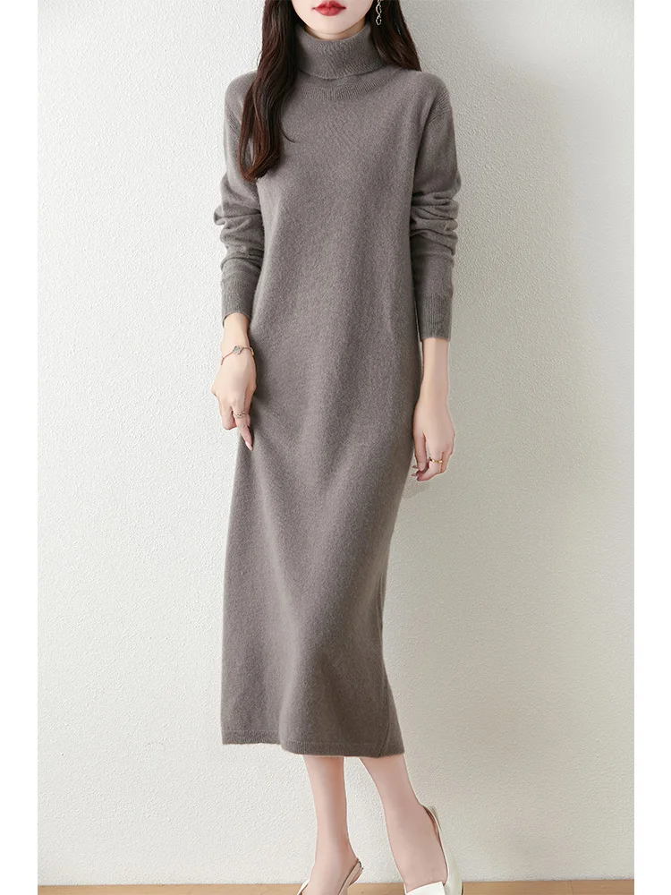 Outono inverno feminino gola alta camisola de lã vestido básico pulôver casual saia de caxemira 100% lã merino malhas roupas macias