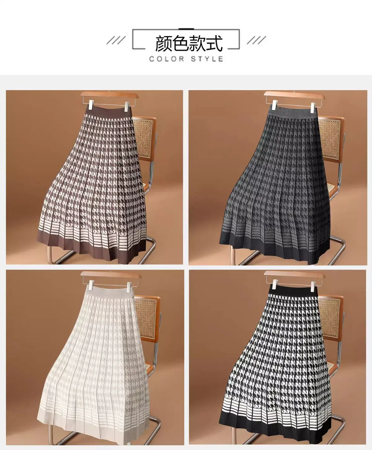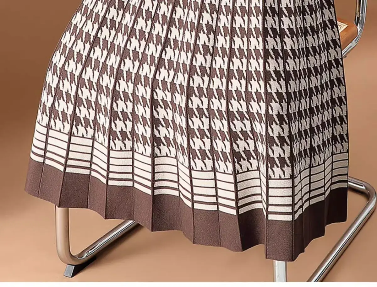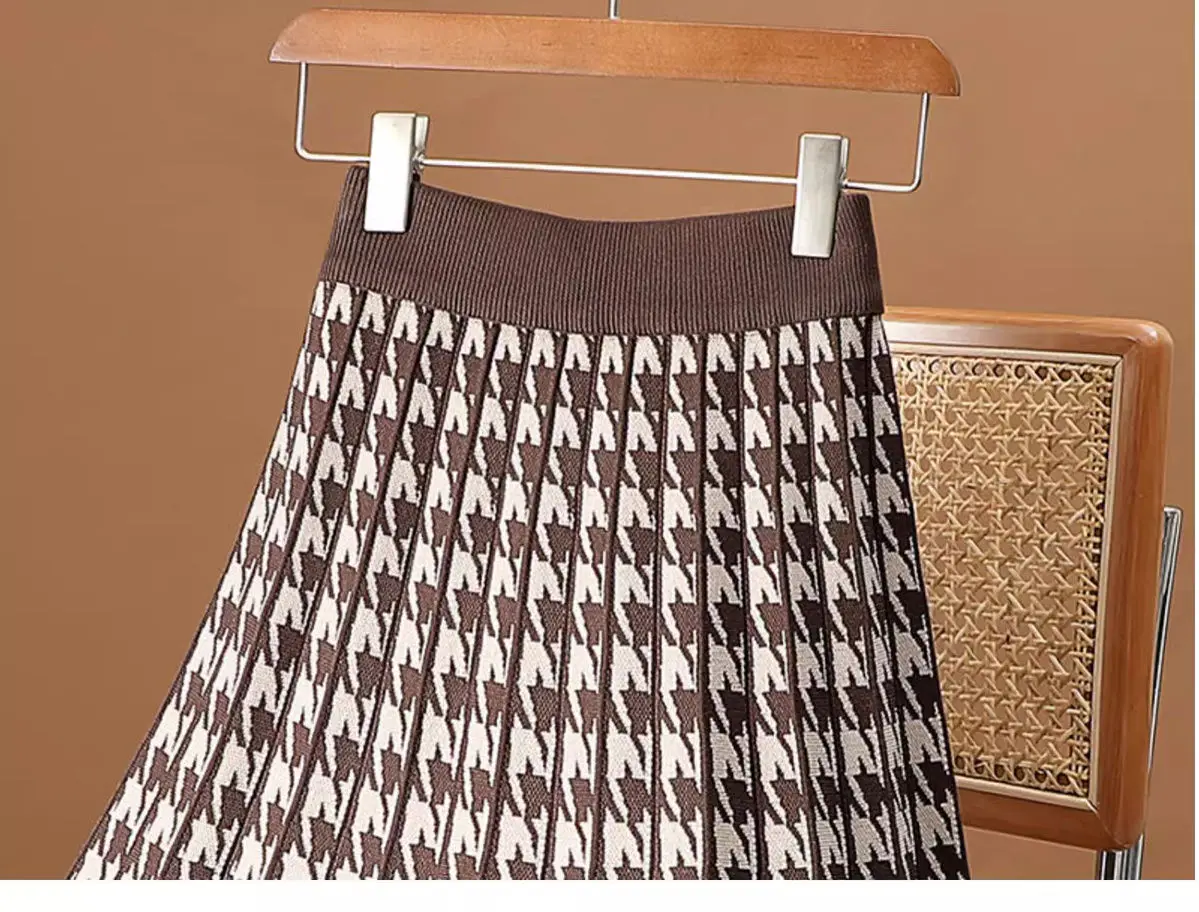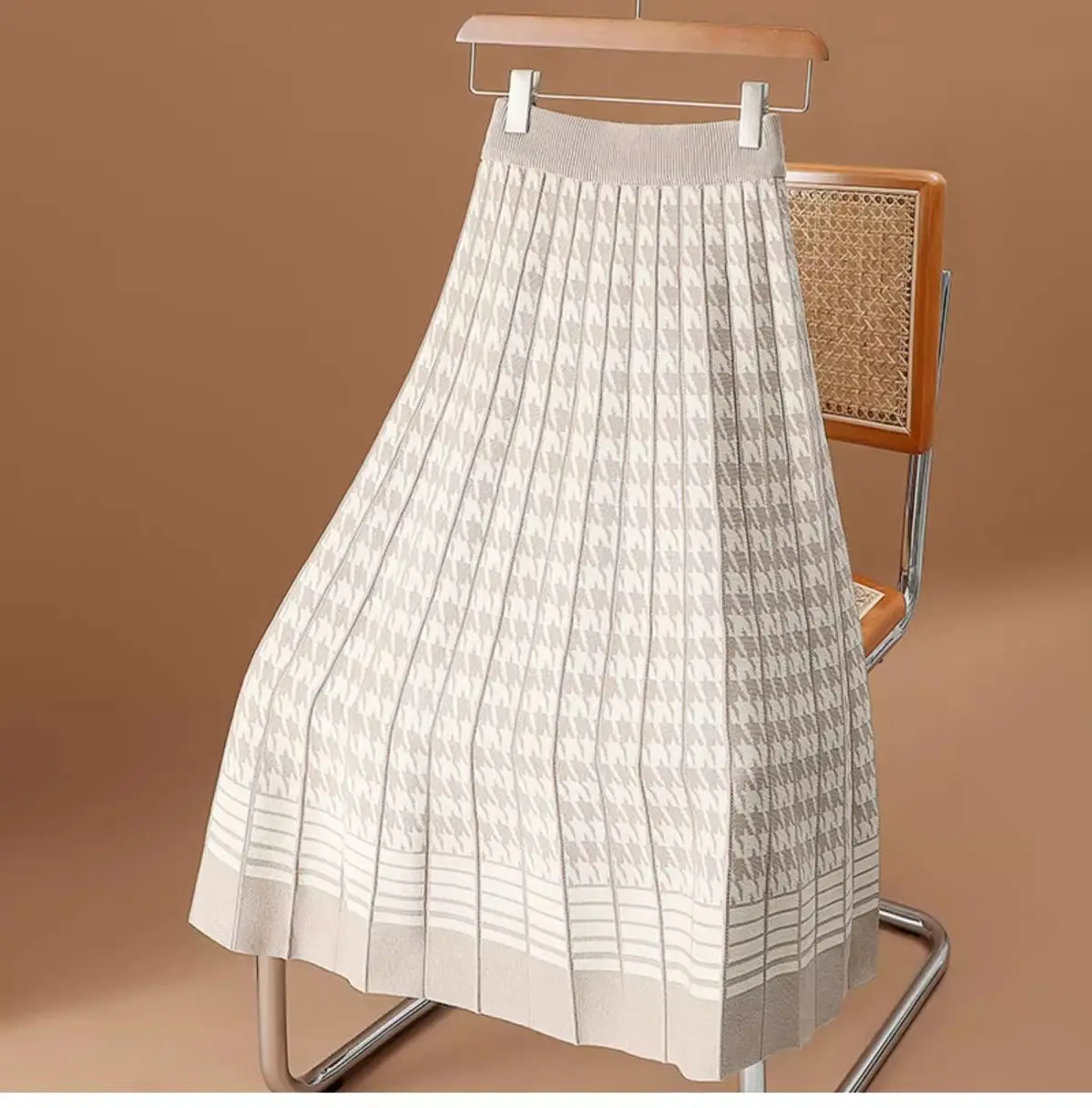 Outono inverno nova xadrez impressão moda cintura elástica a linha saia feminina high street casual plissado tricô saias elegantes