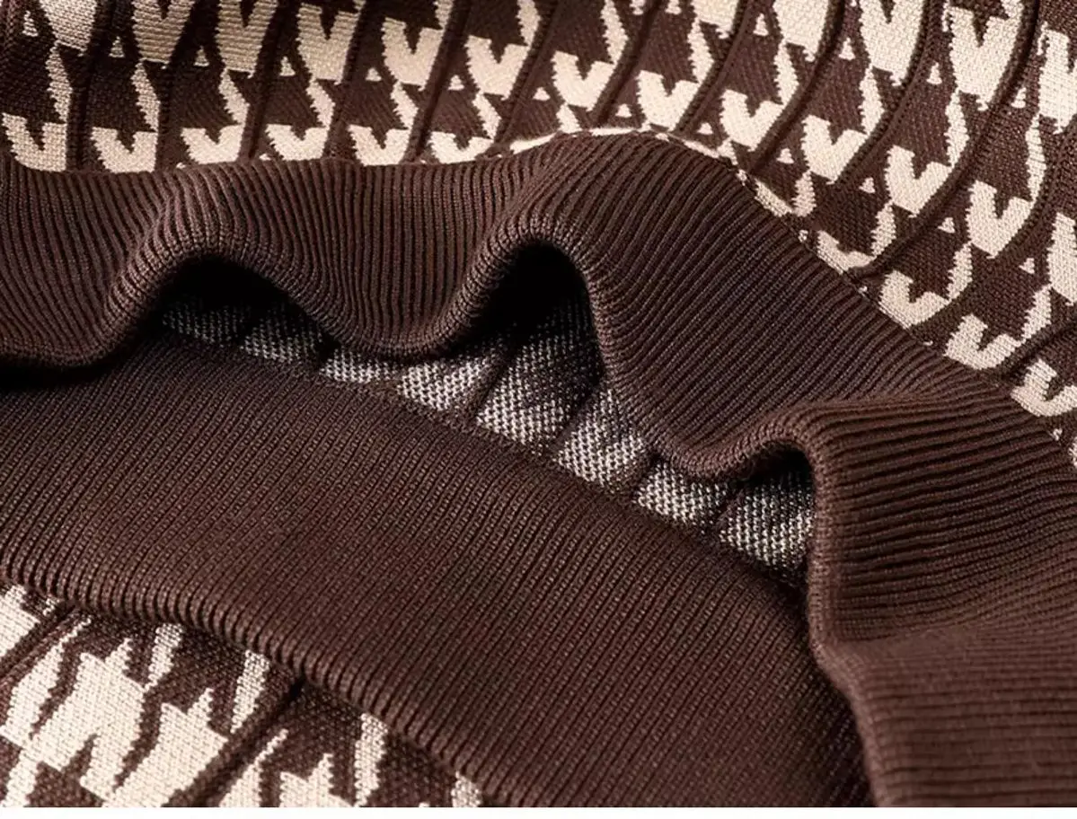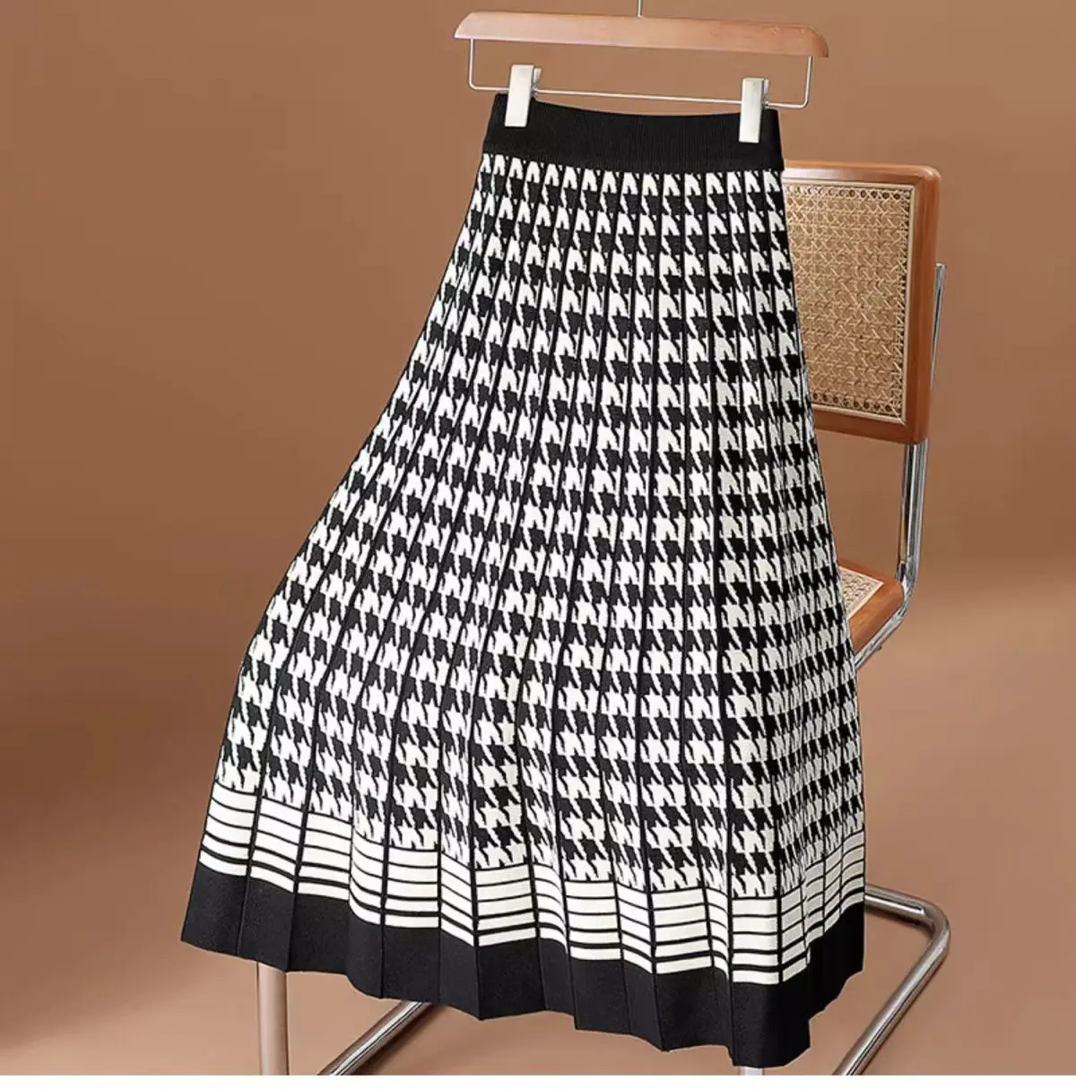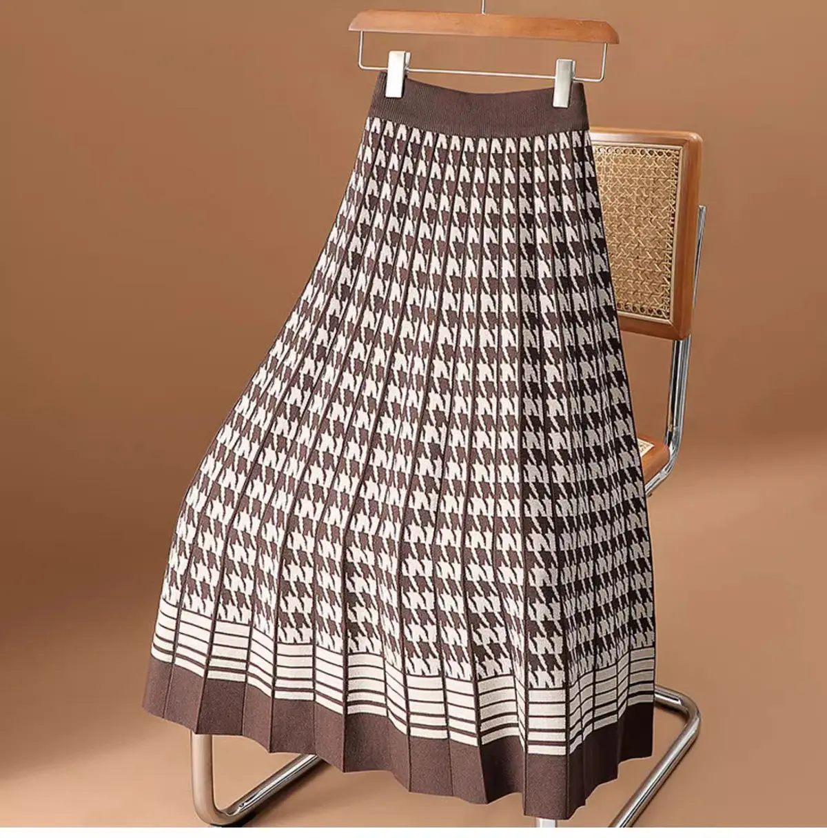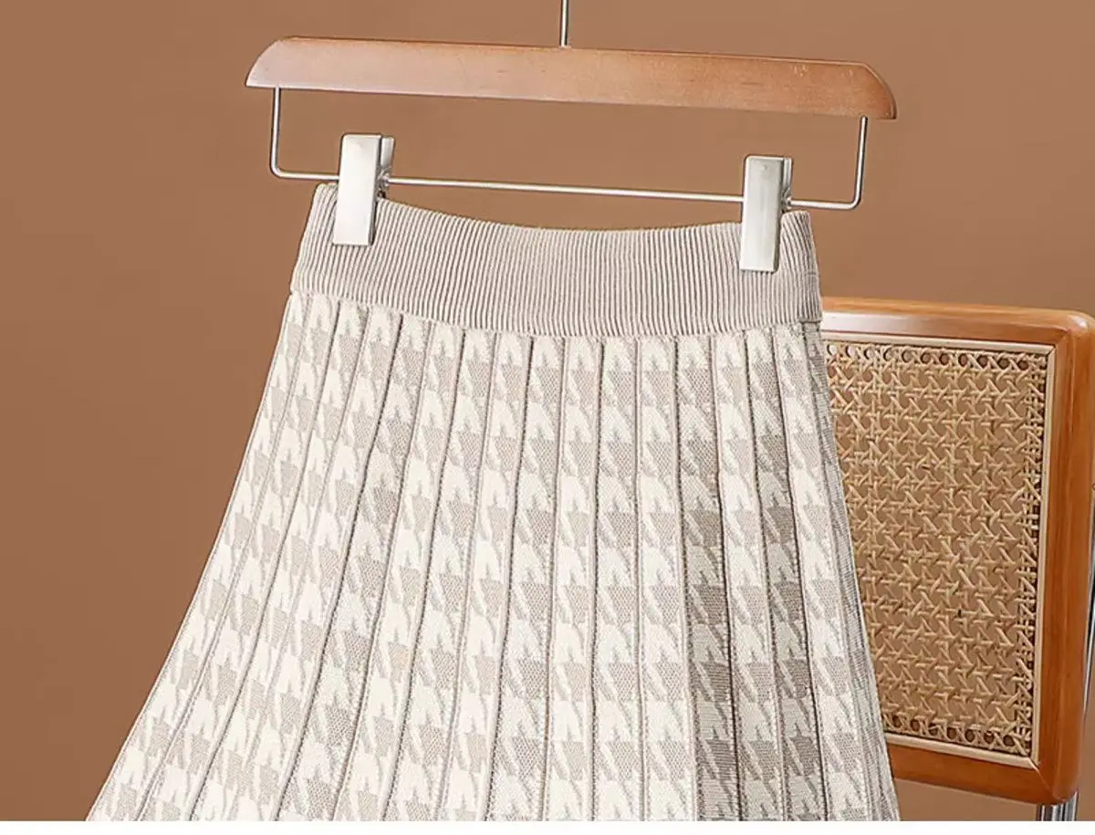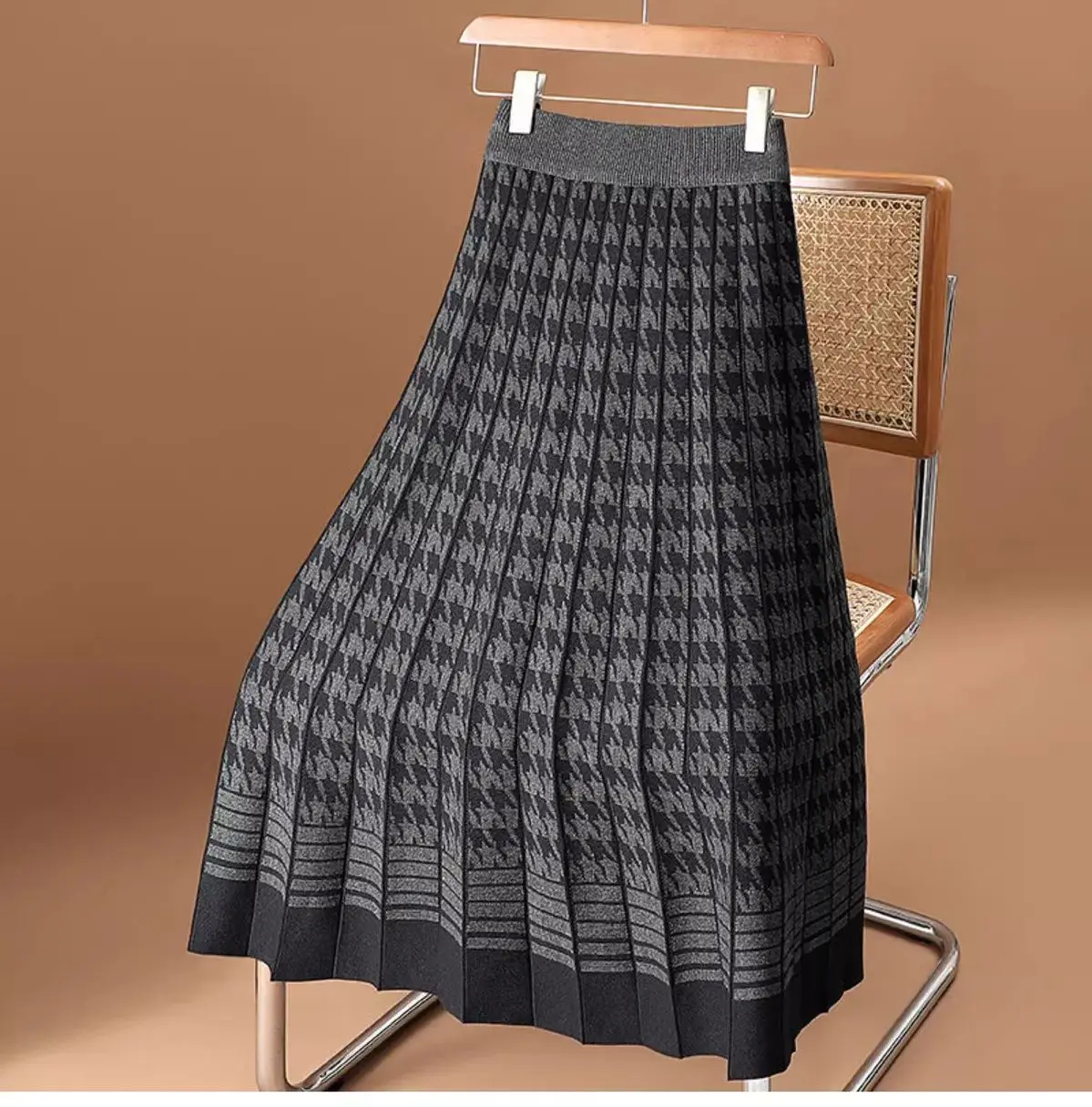 Outono inverno nova xadrez impressão moda cintura elástica a linha saia feminina high street casual plissado tricô saias elegantes