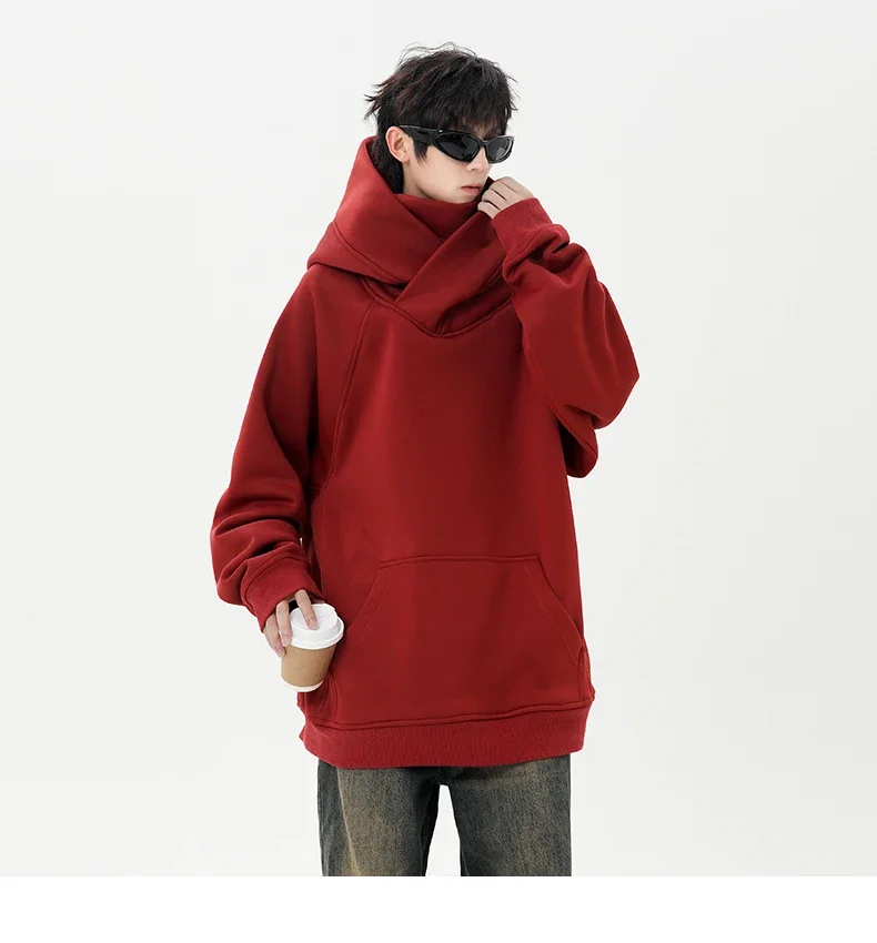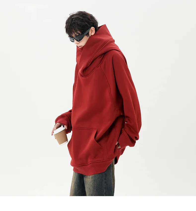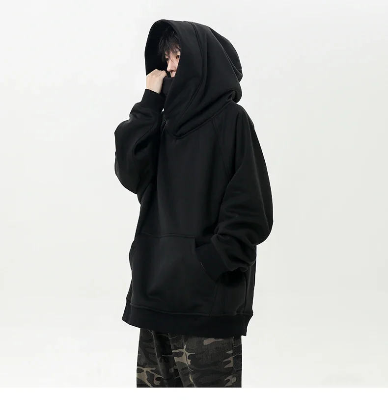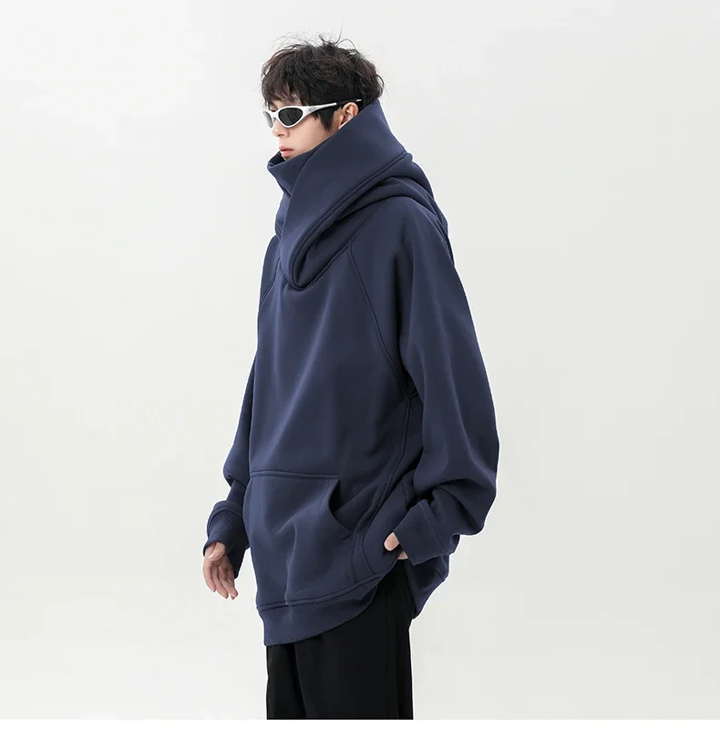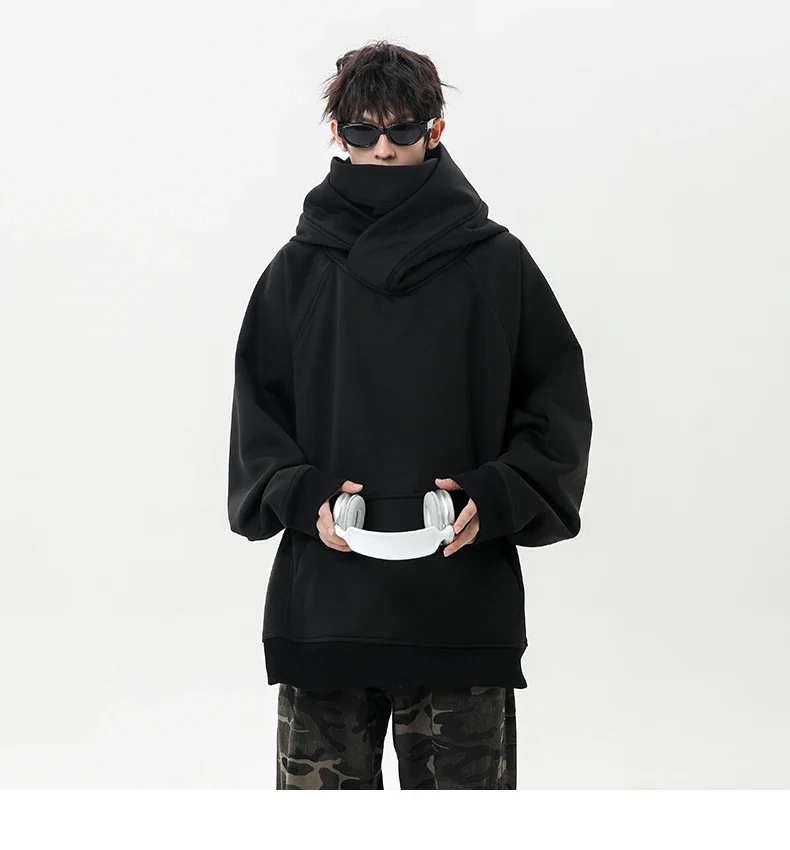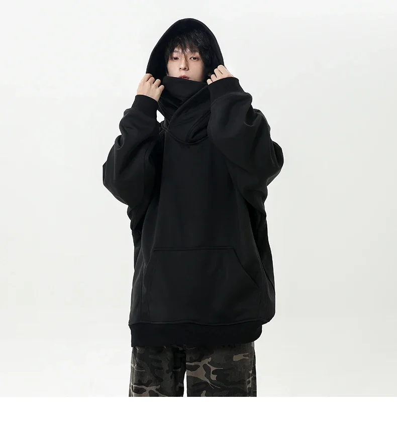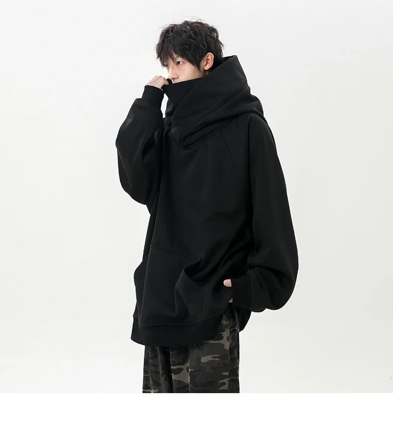 Outono novo moletom de pescoço alto masculino empilhar colarinho hoodie harajuku estilo universitário ninja moletom casual esportes solto casal topo