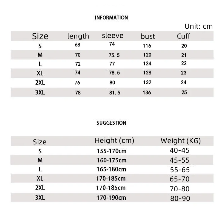 Nota: Vendemos TAMANHO ASIÁTICO é cerca de 2-3 tamanho MENOR do que o tamanho dos EUA, Reino Unido, AU, UE. Escolha o tamanho de acordo com nosso formulário de tamanho. Todas as dimensões que medimos pessoalmente e tentamos a realidade. Ao fazer o pedido, envie a mensagem com seu ombro (CM) e peito (CM). Nós o ajudaremos a confirmar o tamanho.