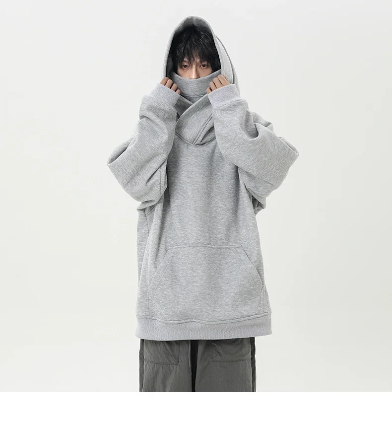 - > Outono novo moletom de pescoço alto masculino empilhar colarinho hoodie harajuku estilo universitário ninja moletom casual esportes solto casal topo