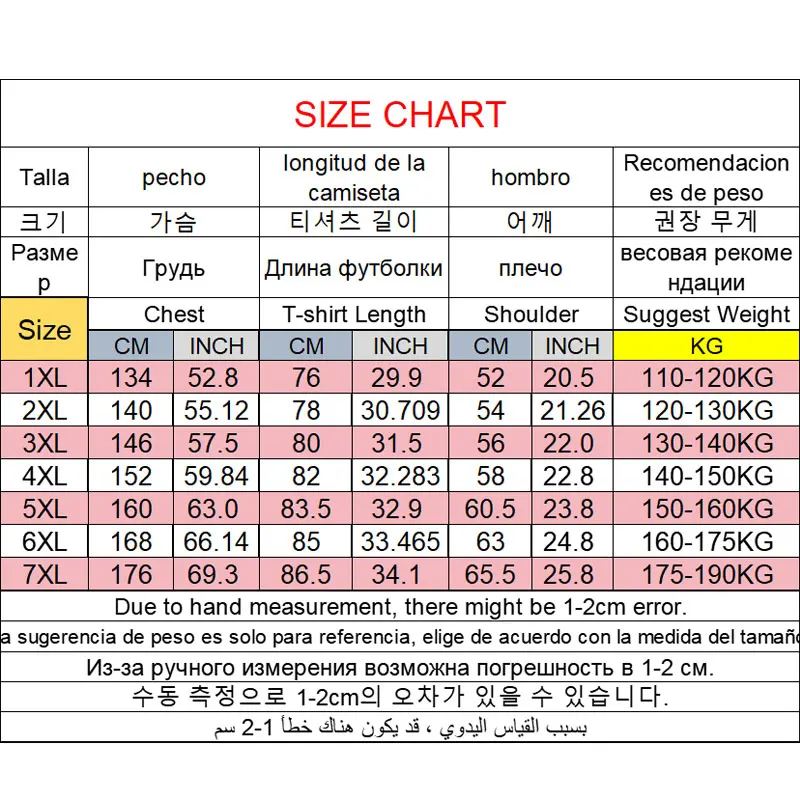 Tamanho: 1XL ~ 7XL