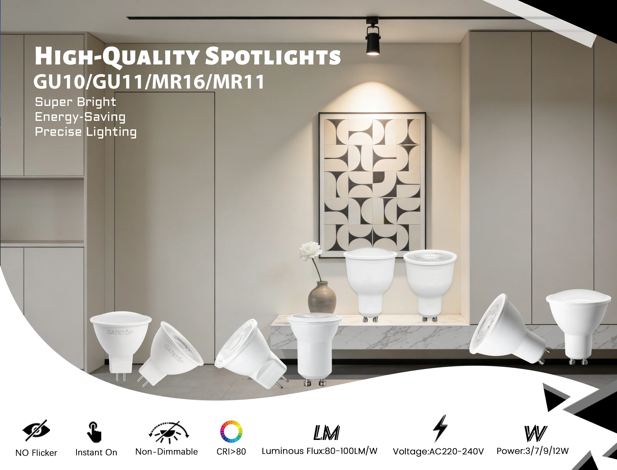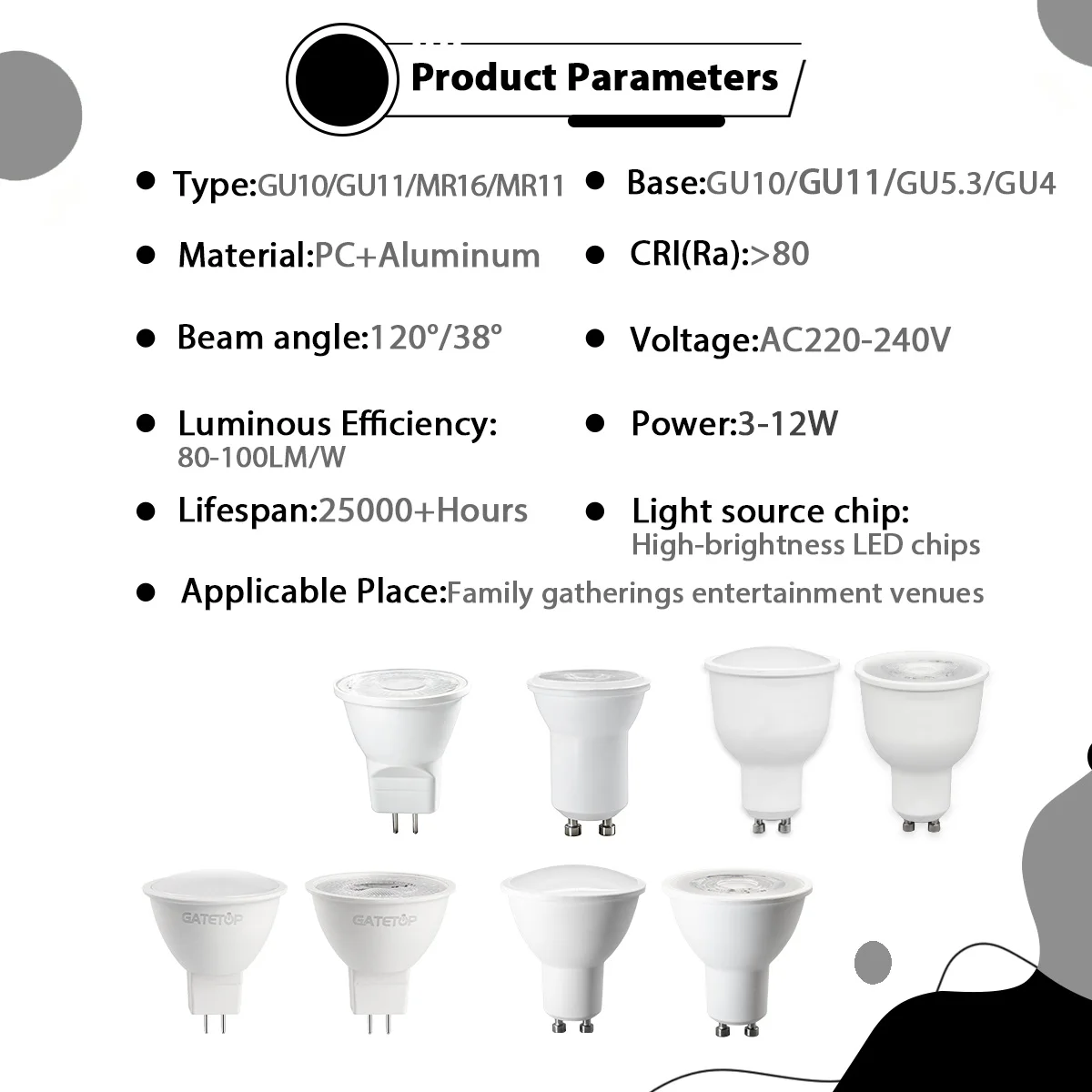 Pacote com 8 Lâmpadas LED Spot GU10 GU4 GU5.3 Base GU11 MR11 AC 220V 3000K 4000K 6000K Refletor 120/38 ° Ângulo de Feixe para Decoração de Hall de Entrada