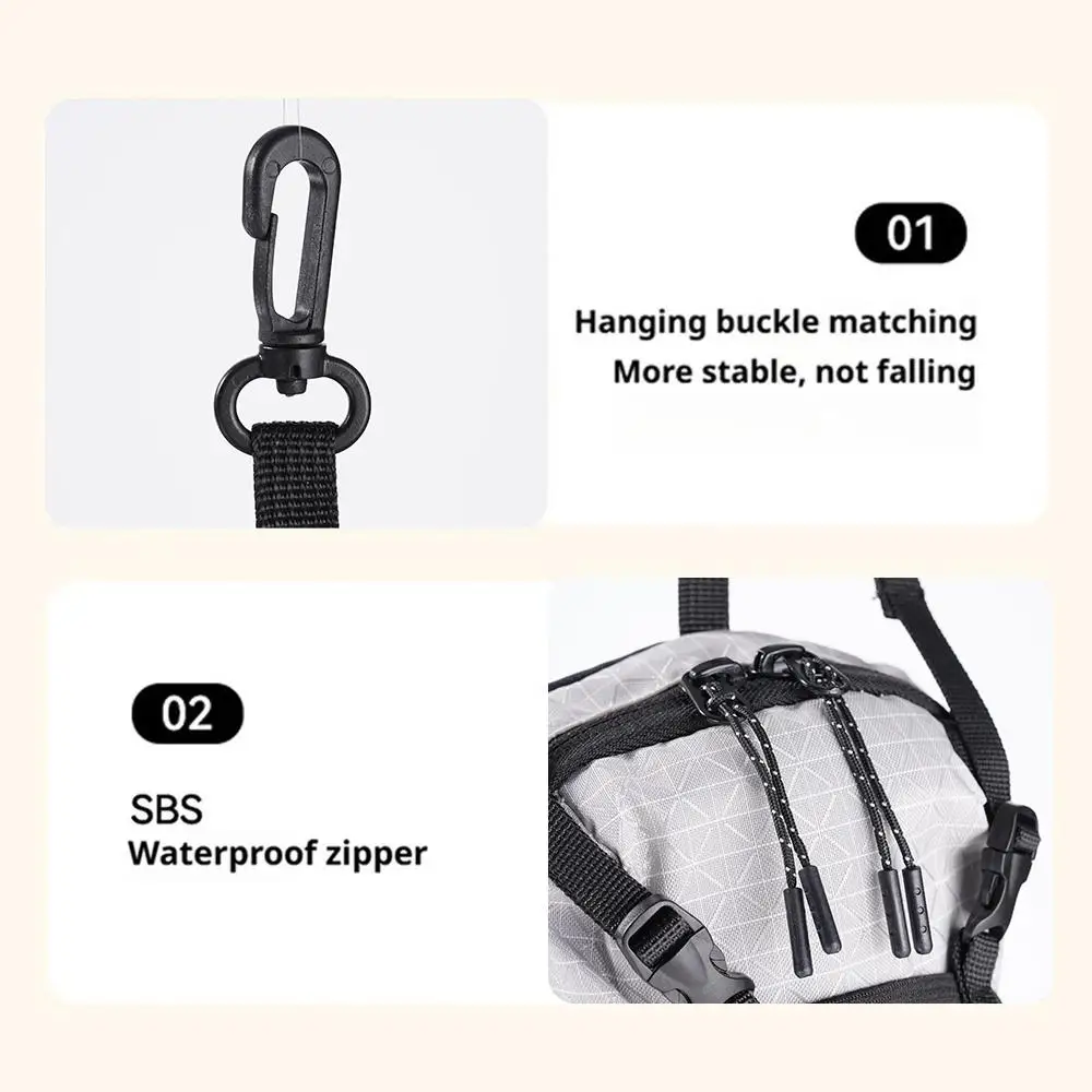 4.As opções versáteis de transporte incluem prender na alça de ombro de uma mochila, usá-la como bolsa crossbody ou como bolsa de cintura independente.A alça ajustável garante que ele permaneça firmemente preso a uma jaqueta grossa ou equipamento para atividades ao ar livre, evitando que se desloque durante o movimento.