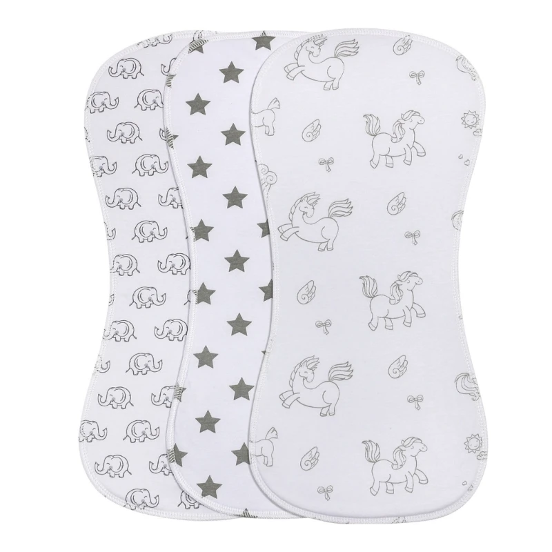 Pode ser usado como babadores para arrotar ao amamentar, mantendo as roupas do bebê secas e limpas ao comer e beber.