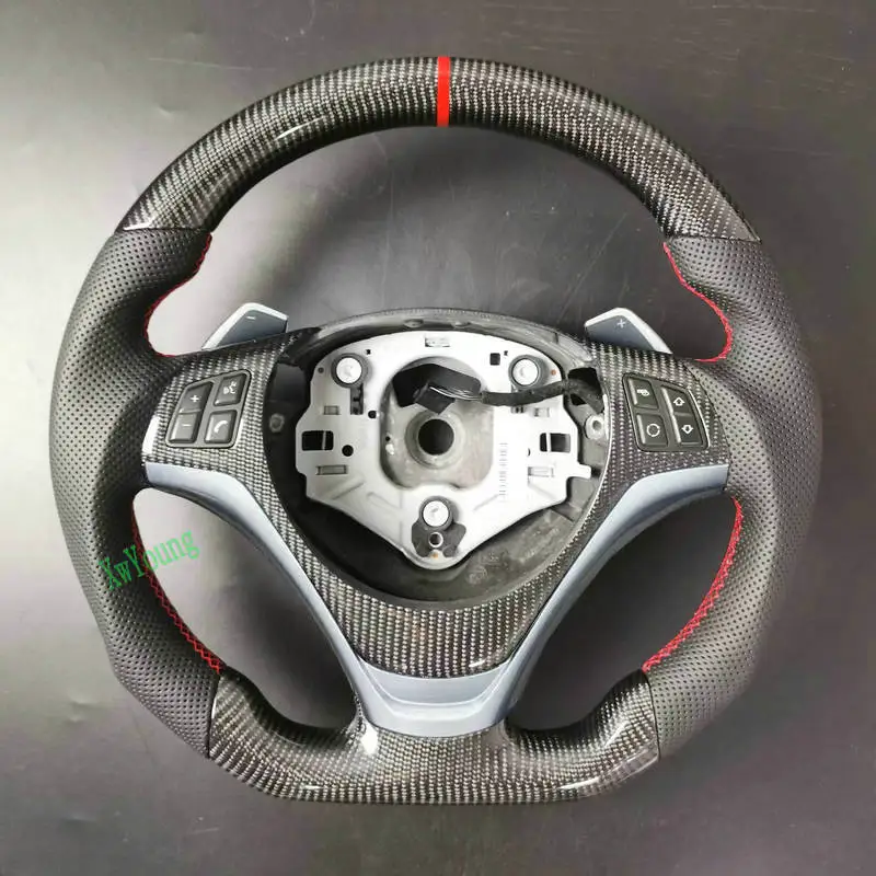 - > Para bmw e84 e83 e84 e87 e88 e89 e90 e92 e93 (com furos de mudança de pá) 100% volante de carro de fibra de carbono real (sem aquecido)