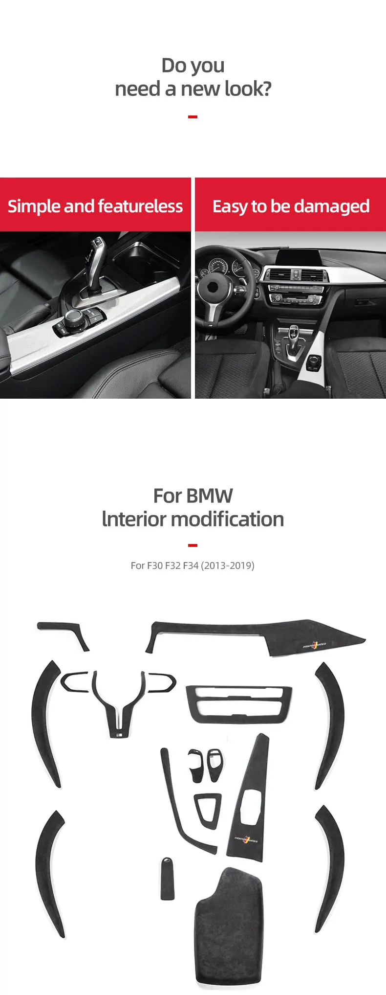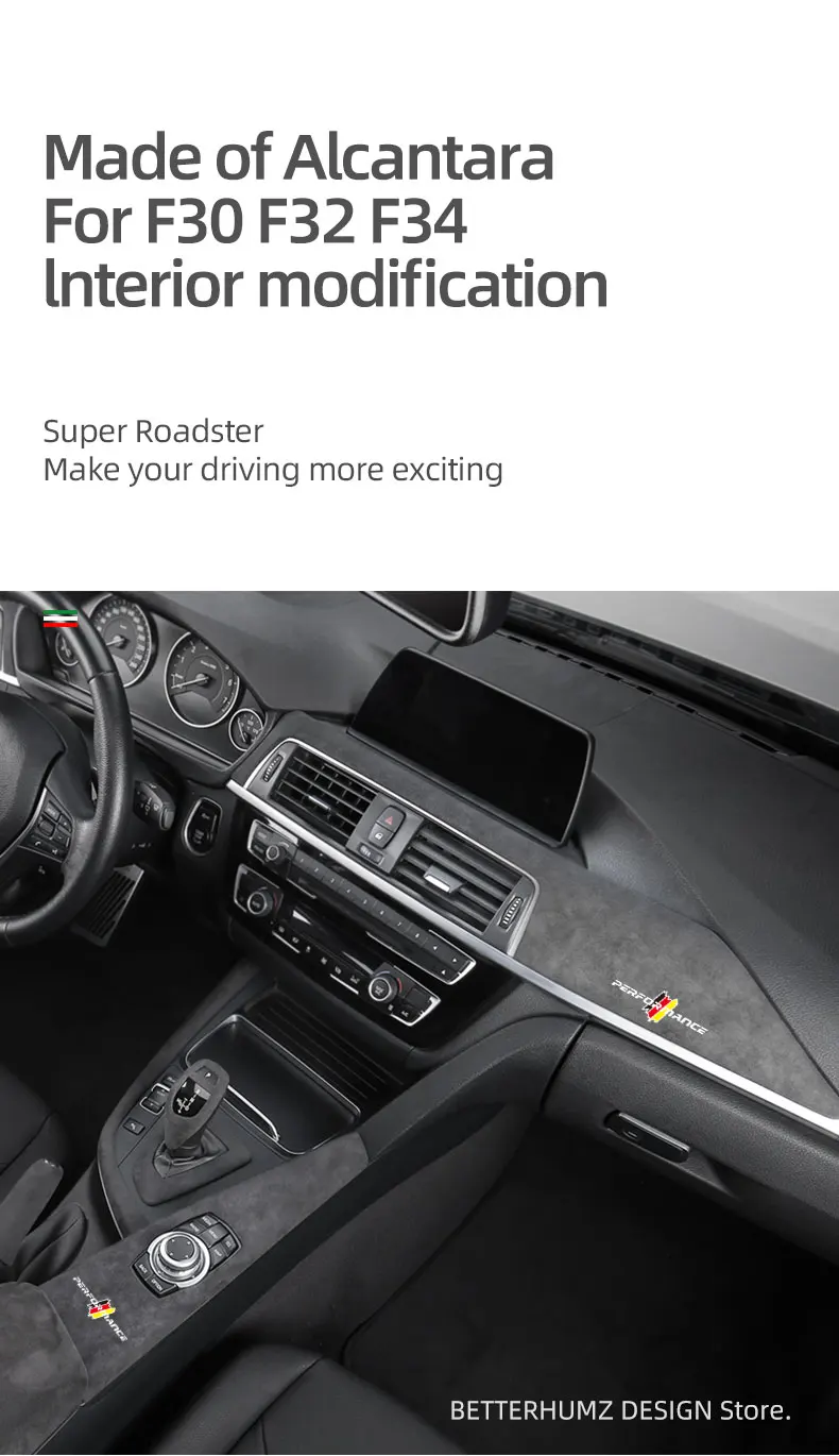- > Para bmw f30 f32 f34 f36 série 3 4 feito de alcântara envoltório console central painel guarnição capa m desempenho acessórios interiores do carro