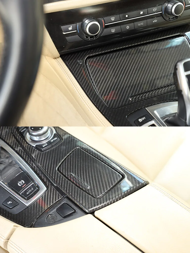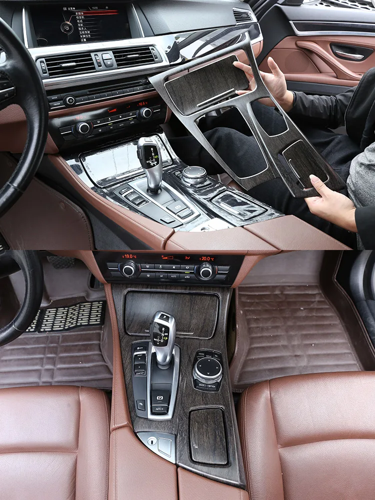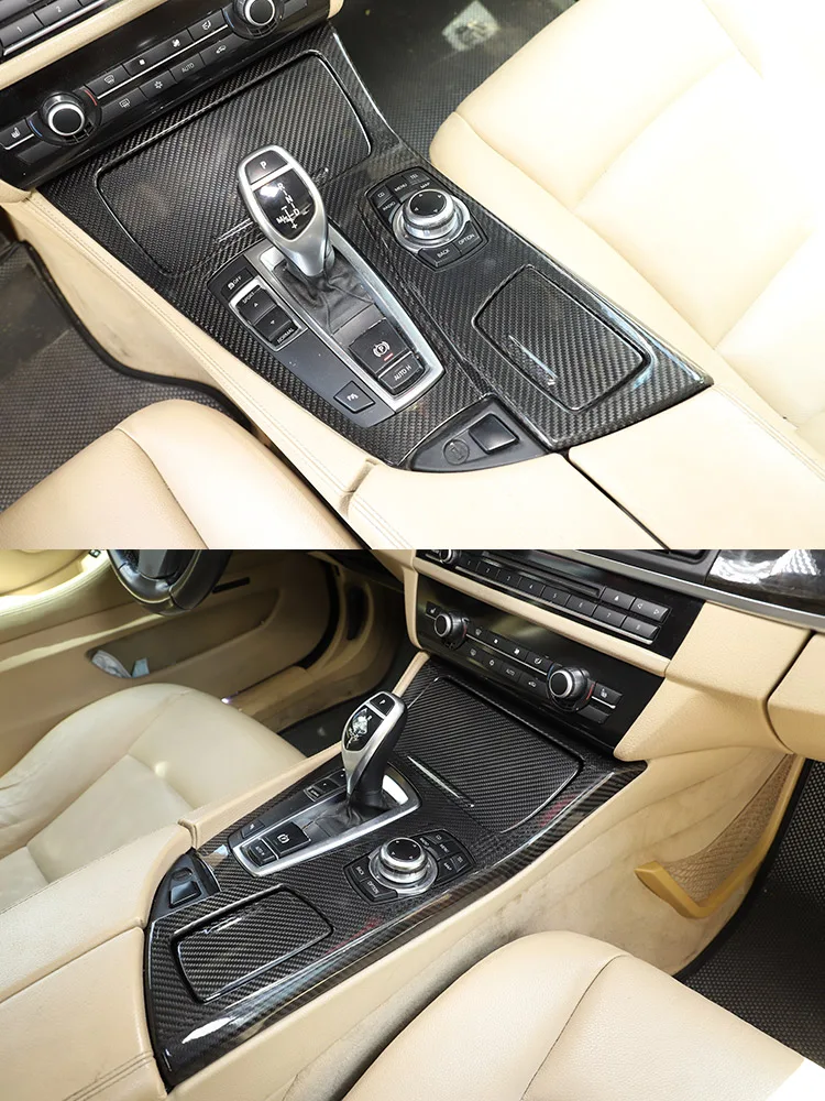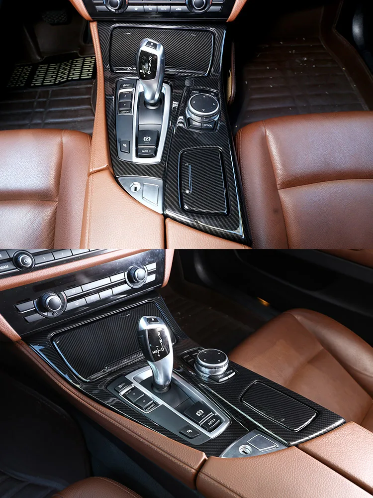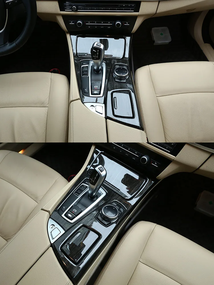 - > Para bmw série 5 f10 2011-2017 520li 525li 530li abs console central do carro painel de mudança de engrenagem capa guarnição adesivos acessórios do carro