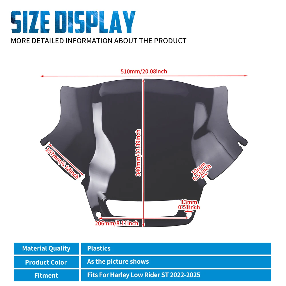 - > Para-brisa de motocicleta, carenagem de 8.5 polegadas de altura, defletor de proteção de tela de vento para harley low rider st 2022 2023 2024 2025