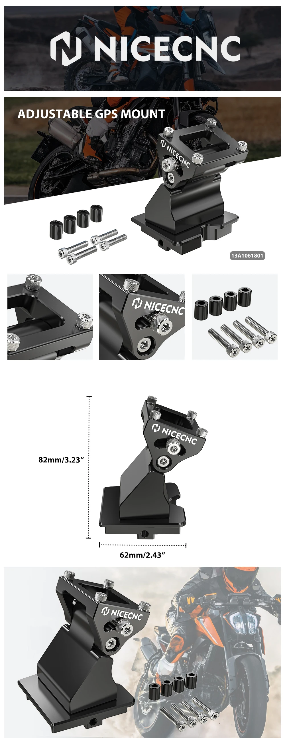 Suporte de montagem GPS ajustável NICECNC para KTM 790 Adventure S Adventure R Adventure Rally R 2019-2022 KTM 890 Adventure S Adventure R Adventure Rally R 2020-2022 KTM 390 Adventure 2020-2023