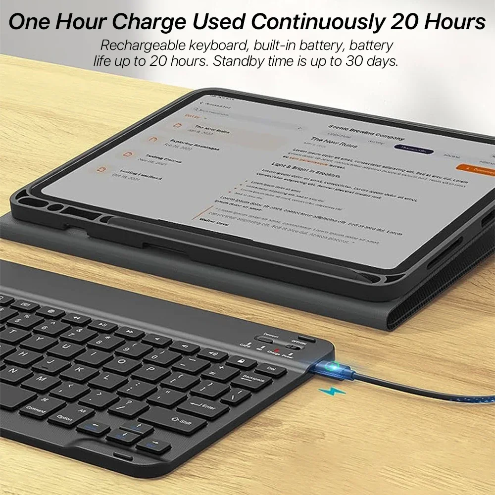 Teclado recarregável, bateria embutida, duração da bateria de até 20 horas.O tempo de espera é de até 30 dias.