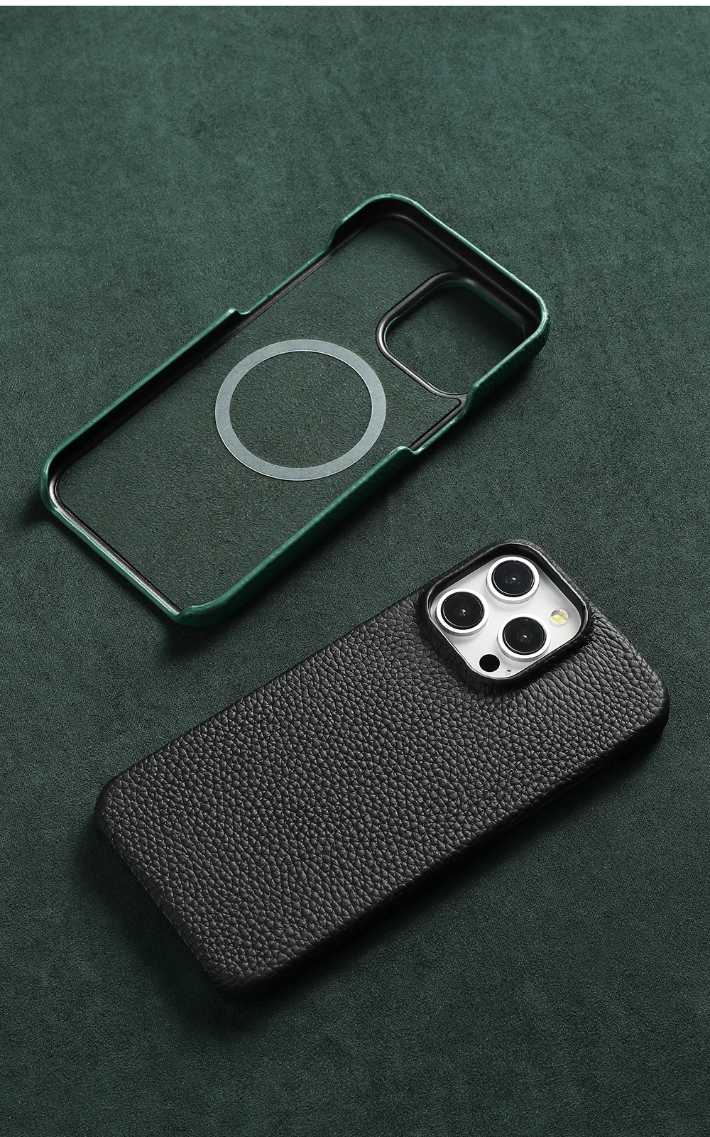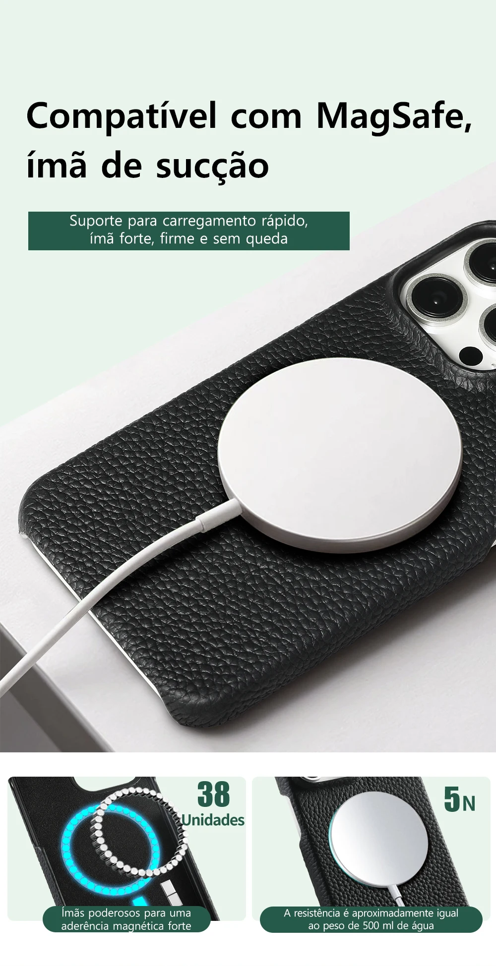 - > Para magsafe caso para iphone 17 15 16 pro max ar 17pro natural couro lichia protetor magnético luxo telefone capa traseira