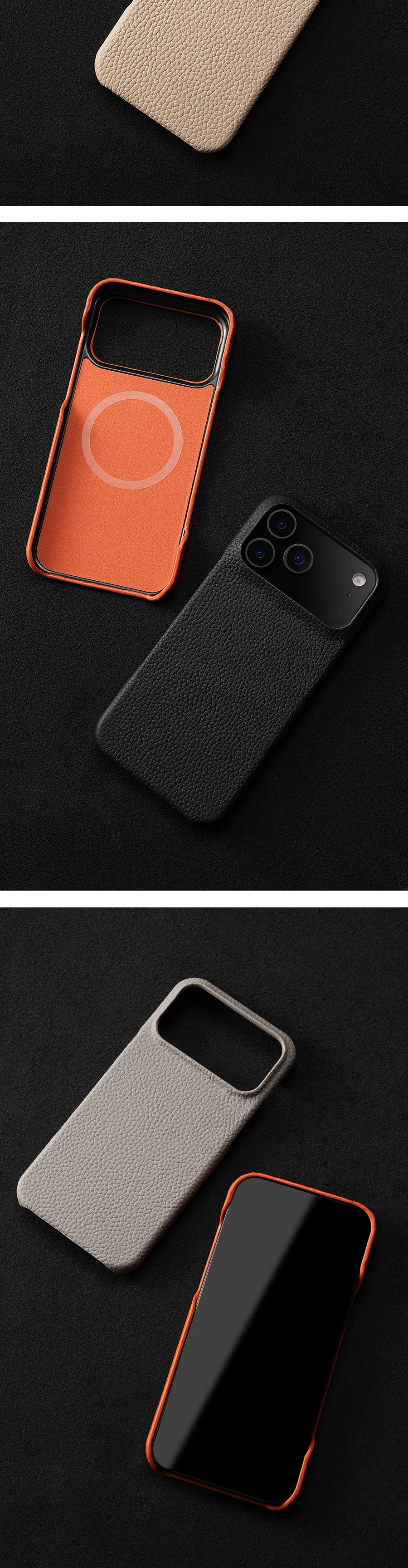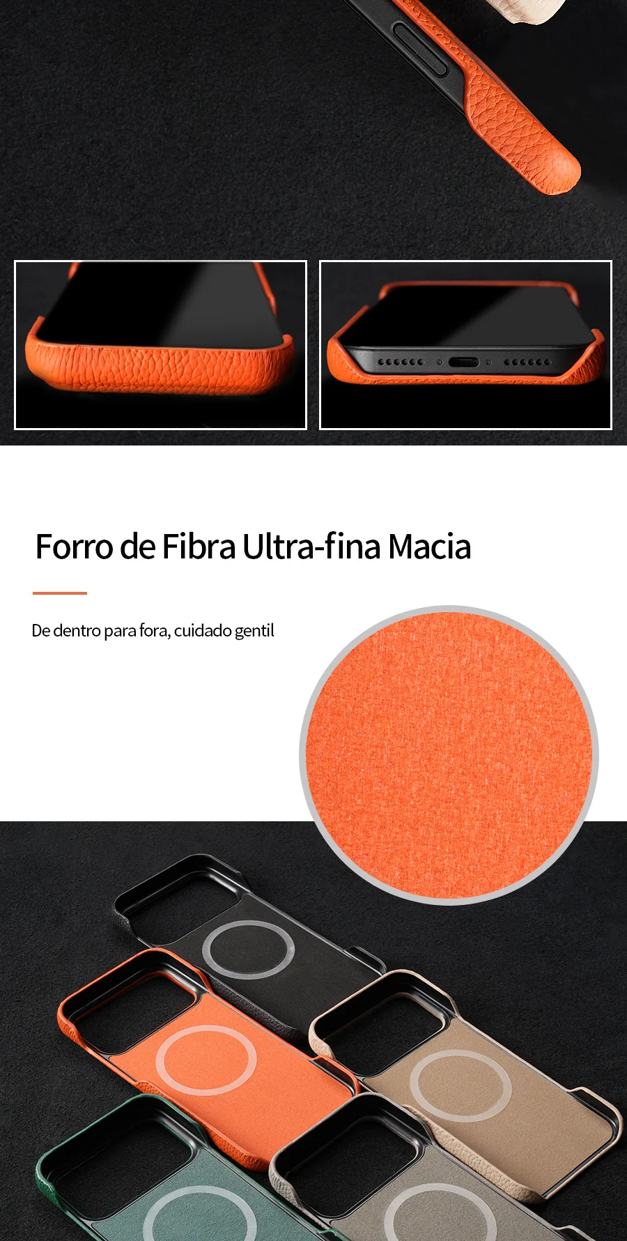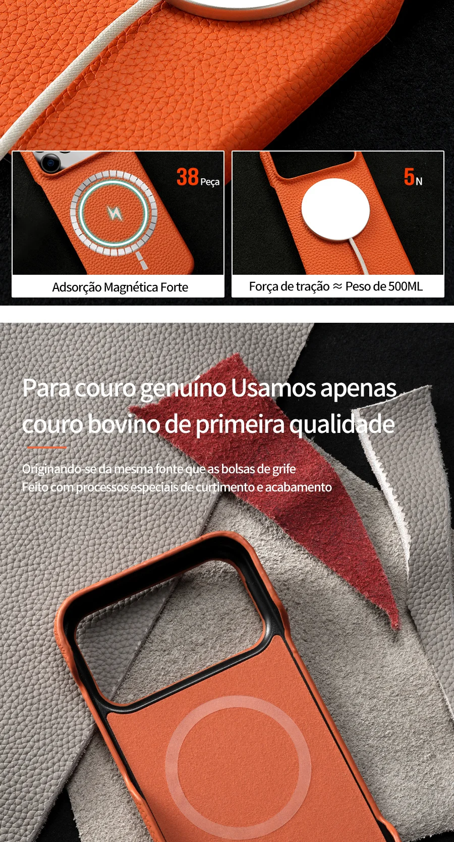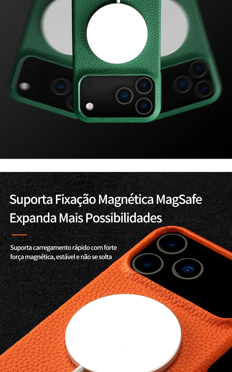 - > Para magsafe caso para iphone 17 ar 15 16 pro max 17pro lichia natural couro protetor magnético luxo telefone capa traseira