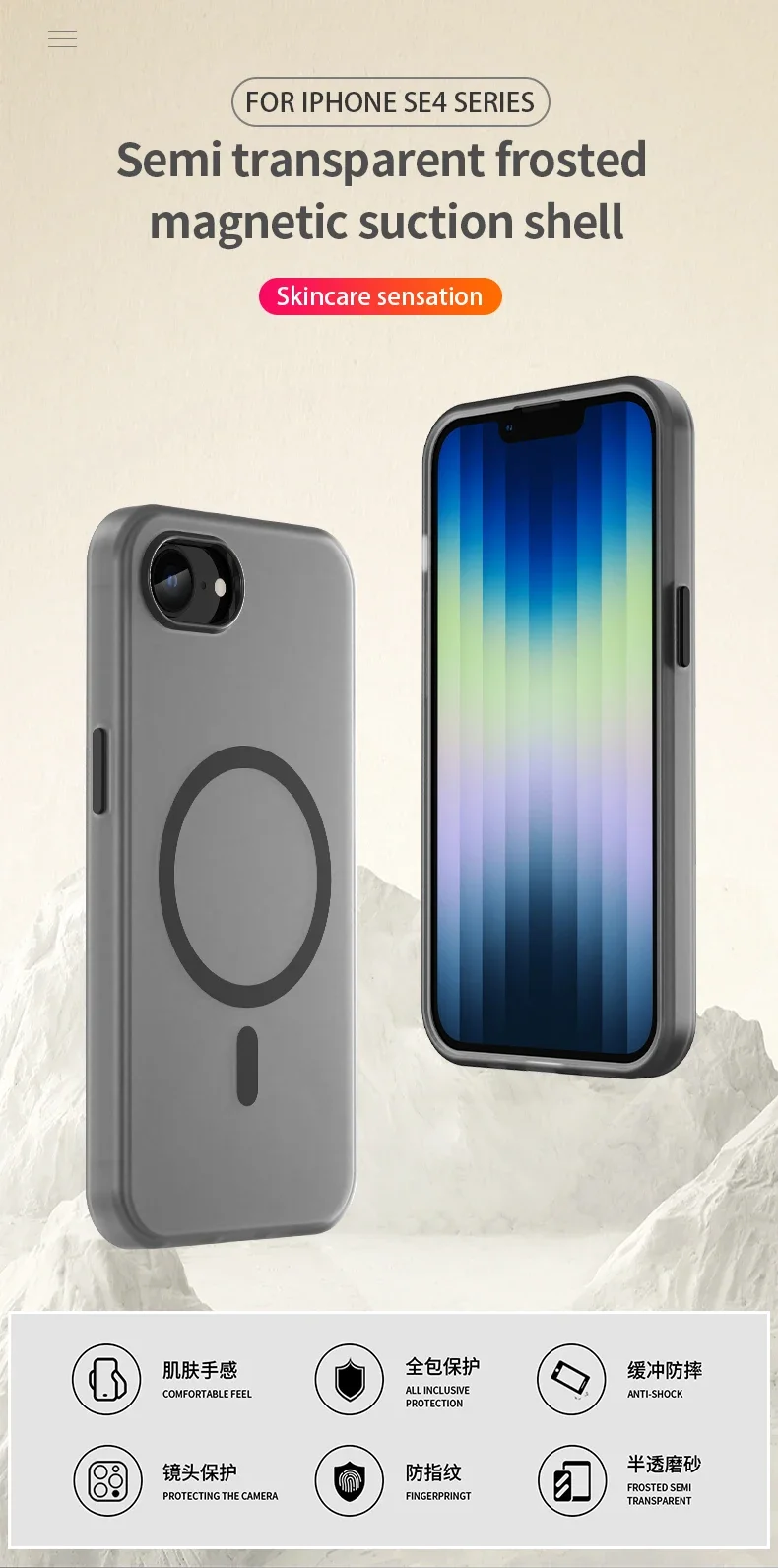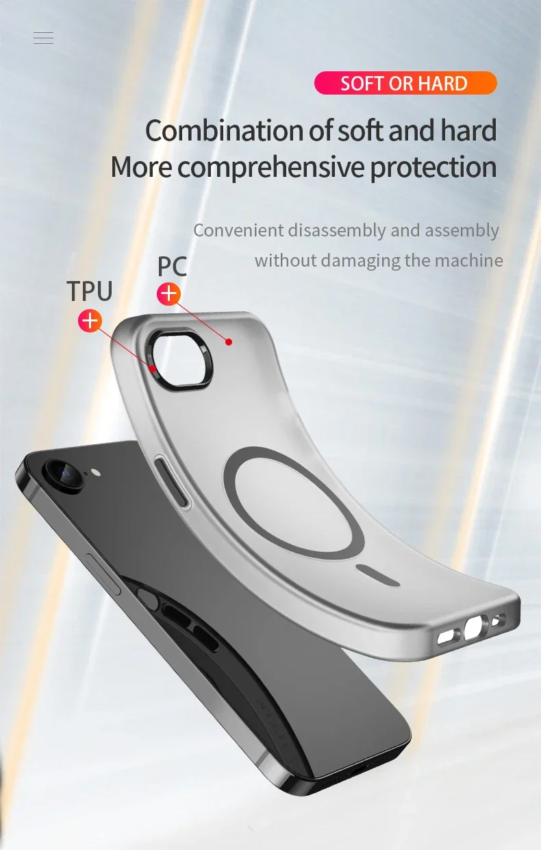 - > Para magsafe caso translúcido fosco funda à prova de choque capa protetora para iphone se 3 2 cor sólida anti-impressão digital coque
