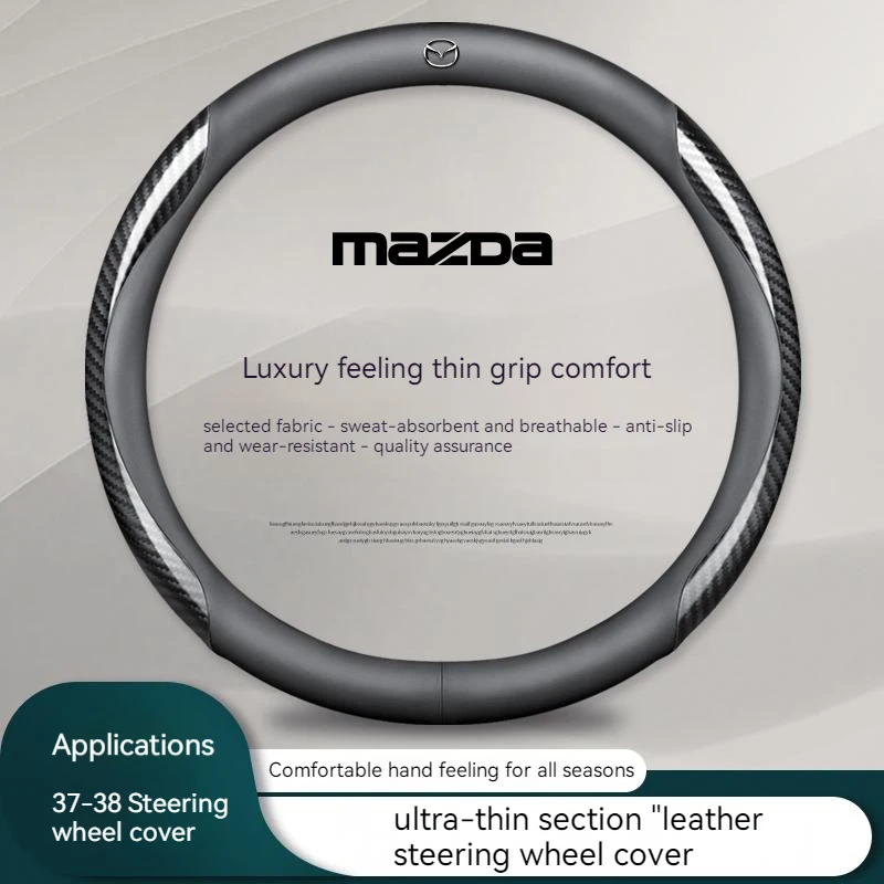 - > Para mazda 3 5 6 skyactiv axela atenza cx30 cx5 cx8 cx9 mx5 rx8 rx7 bt50 fibra de carbono leathe acessórios capa volante do carro