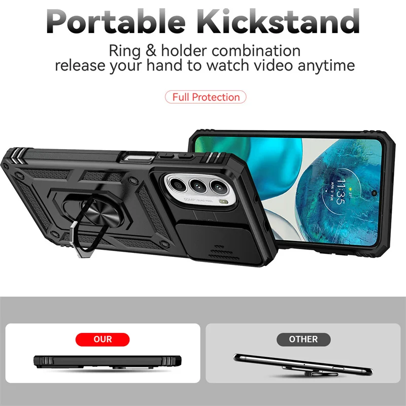 - > Para motorola g52 g82 caso à prova de choque armadura slide câmera proteger funda para moto g52 g82 g 52 82 suporte magnético anel capa traseira