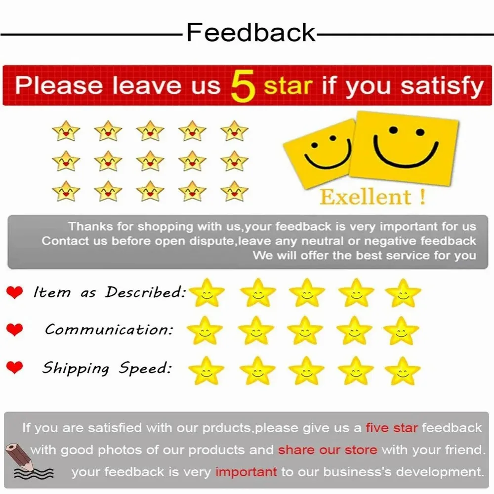 8.Por favor, dê um feedback de 5 estrelas se você estiver satisfeito com nossos produtos, é muito importante para nós, se você tiver alguma dúvida, entre em contato conosco, iremos atendê-lo no aliexpress