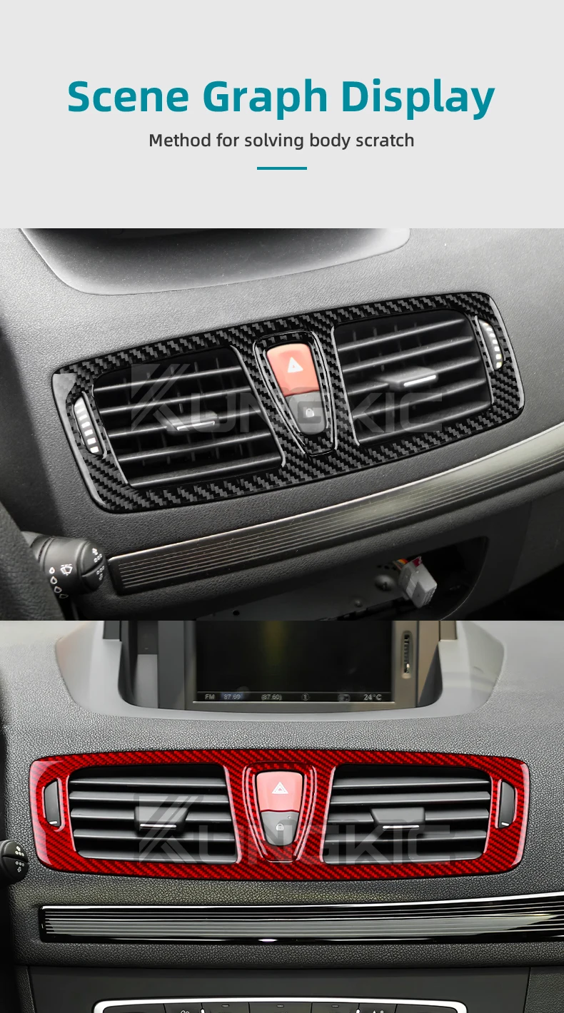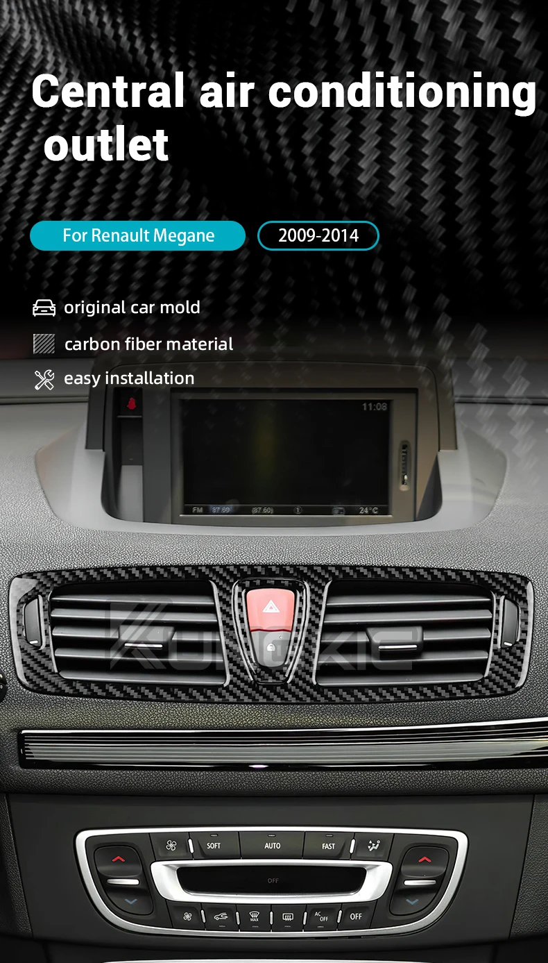 - > Para renault megane rs 2009 2010 2011 2012 2013 2014 2015 real macio adesivo de fibra carbono lhd rhd console central saída ar guarnição