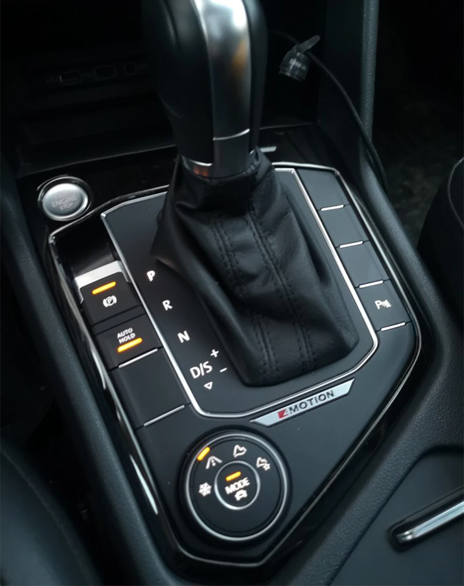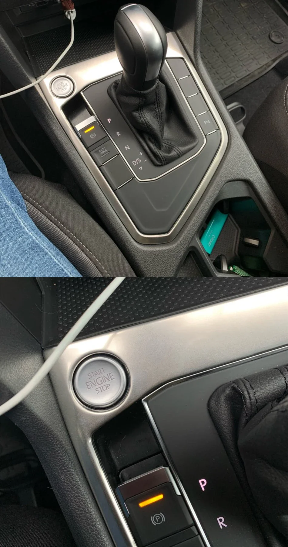 - > Para Volkswagen VW Tiguan L MK2 2016-2020: Adesivos de Aço Inoxidável para Estilização Automotiva, Painel de Câmbio e Acessórios de Acabamento Interno