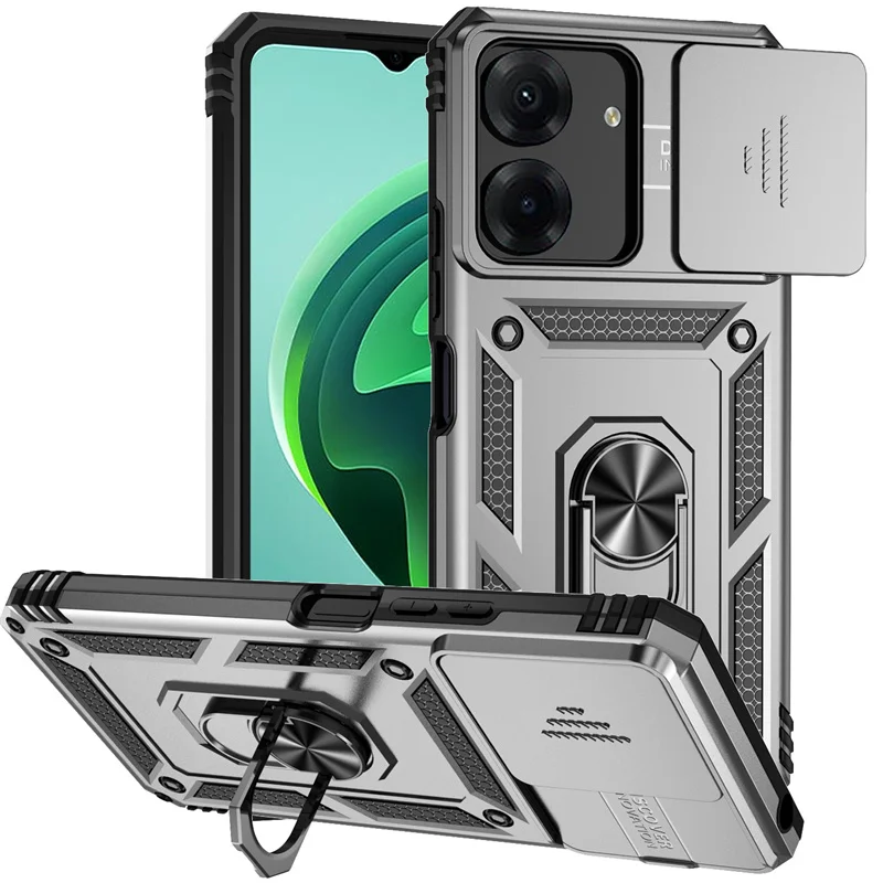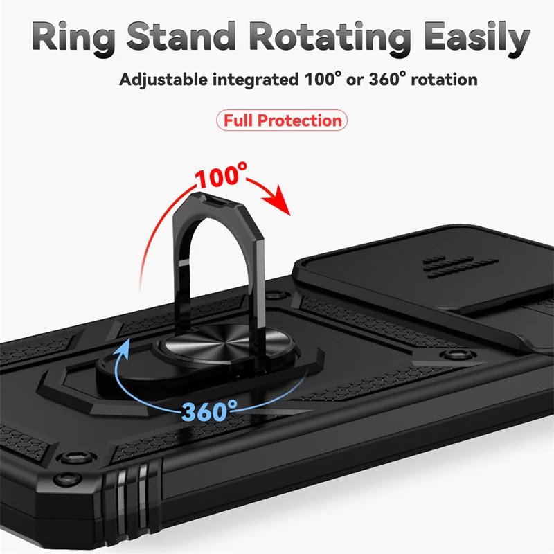 - > Para xiaomi redmi 13c caso lente deslizante proteger armadura à prova de choque casos de telefone para xiaomi redmi 13c 13 c redmi13c anel titular capa