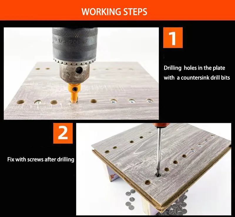 Nossas brocas escareadoras para cortador de parafusos de madeira são produzidas estritamente com materiais de alta qualidade, que são mais precisos em tamanho do que outras brocas escareadoras para madeira.Nossas brocas escareadoras são seu bom ajudante na indústria da madeira.