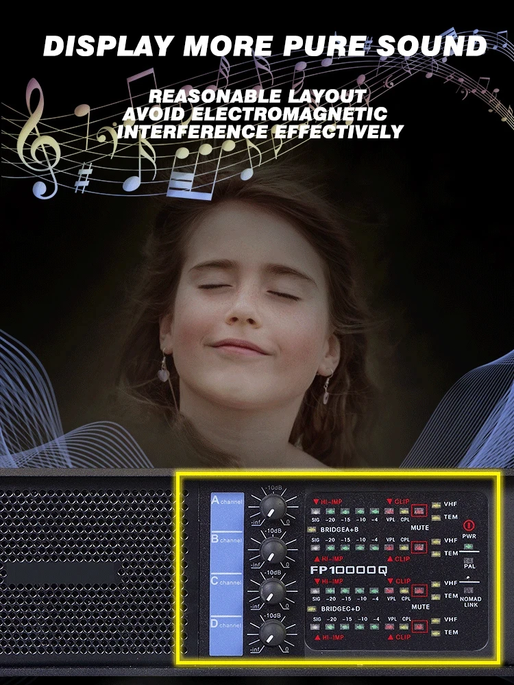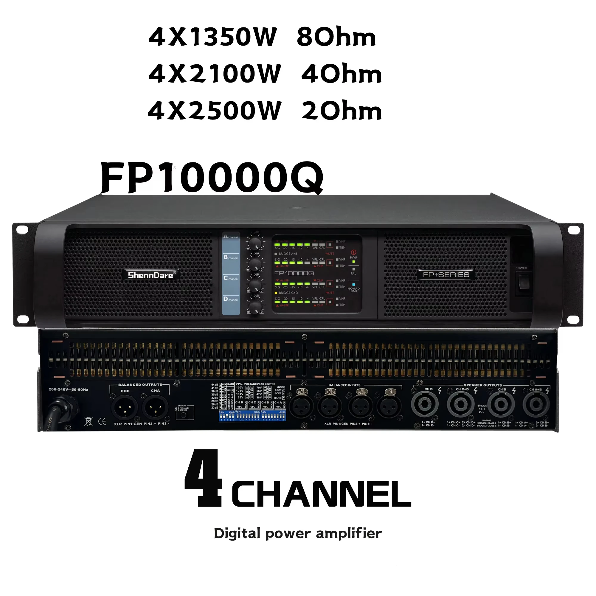 Paulkitson fp10000q 2500w amplificador de potência profissional de 4 canais para subwoofer e linha array amplificador de alto-falante 1350w 8ohms