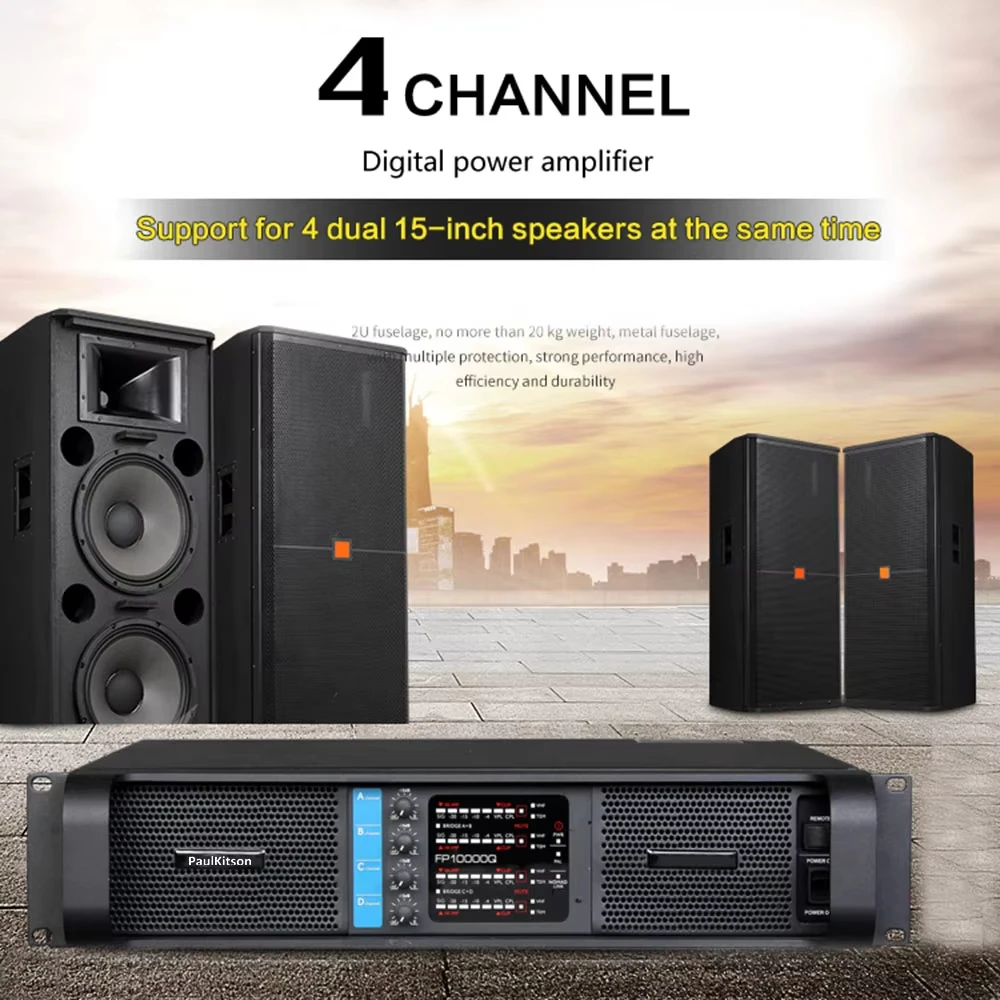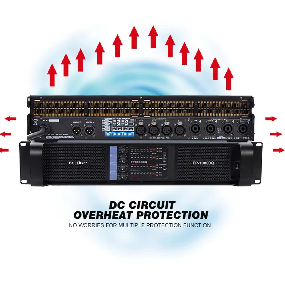 - > Paulkitson fp10000q 2500w amplificador de potência profissional de 4 canais para subwoofer e linha array amplificador de alto-falante 1350w 8ohms