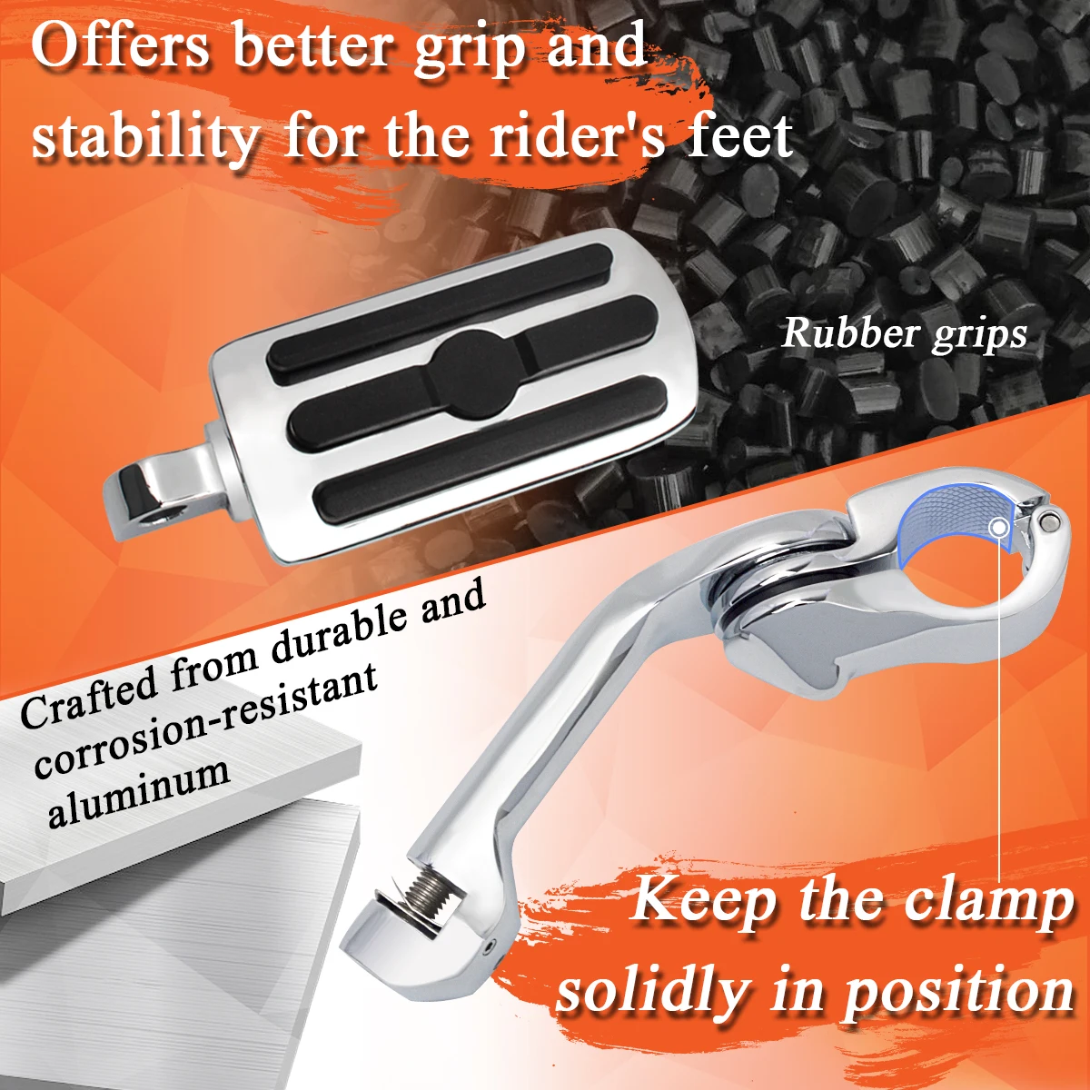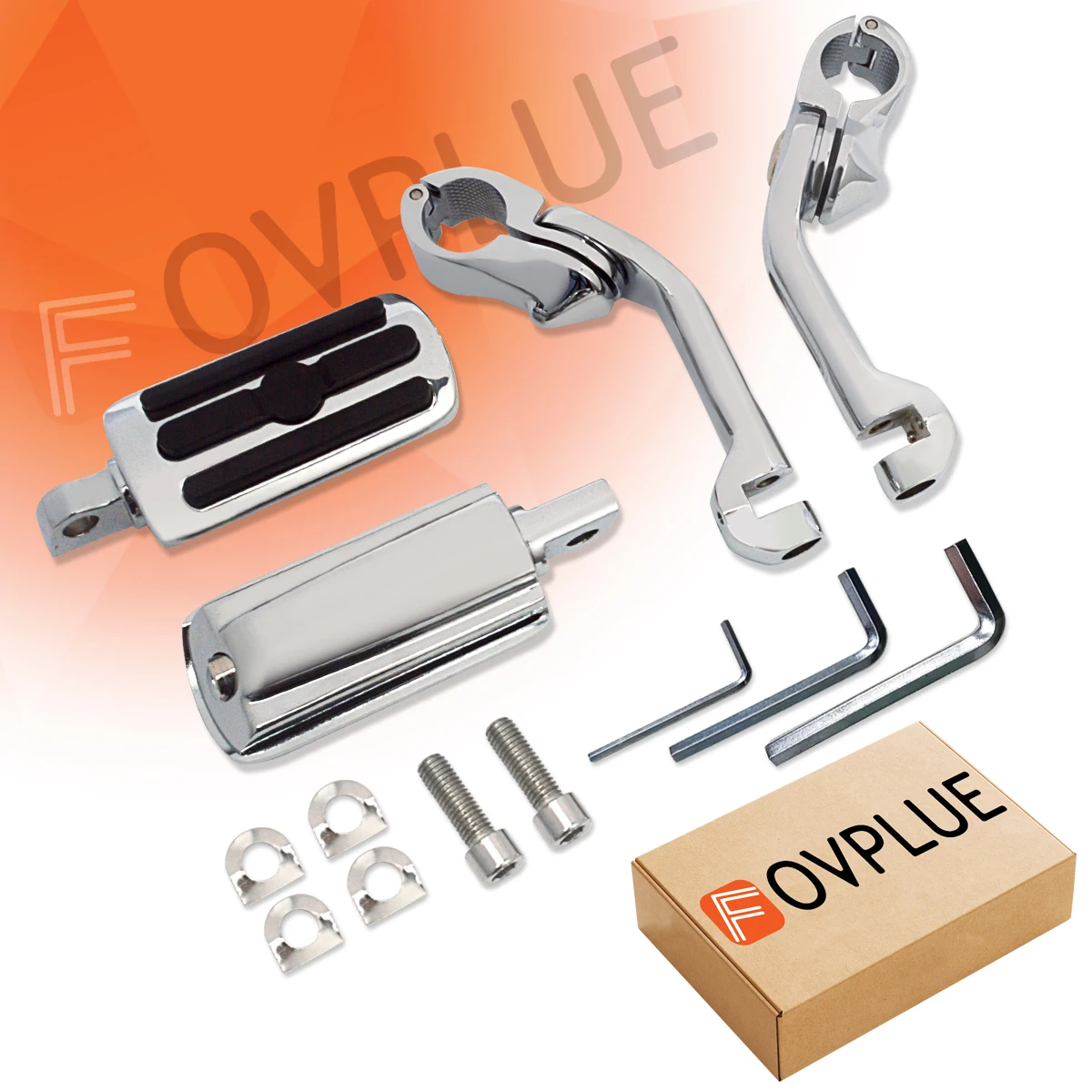 Pegs de estrada 1.25 "barra de proteção de motor em ângulo longo, apoio para os pés da motocicleta para harley electra glide road king street glide cromo