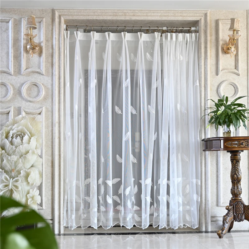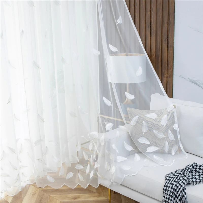 Pena branca bordada cortina pura, elegante tela de janela transparente para sala Quarto e decoração da cozinha, francês romântico