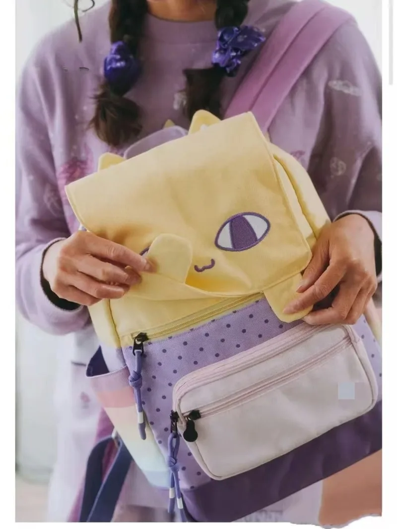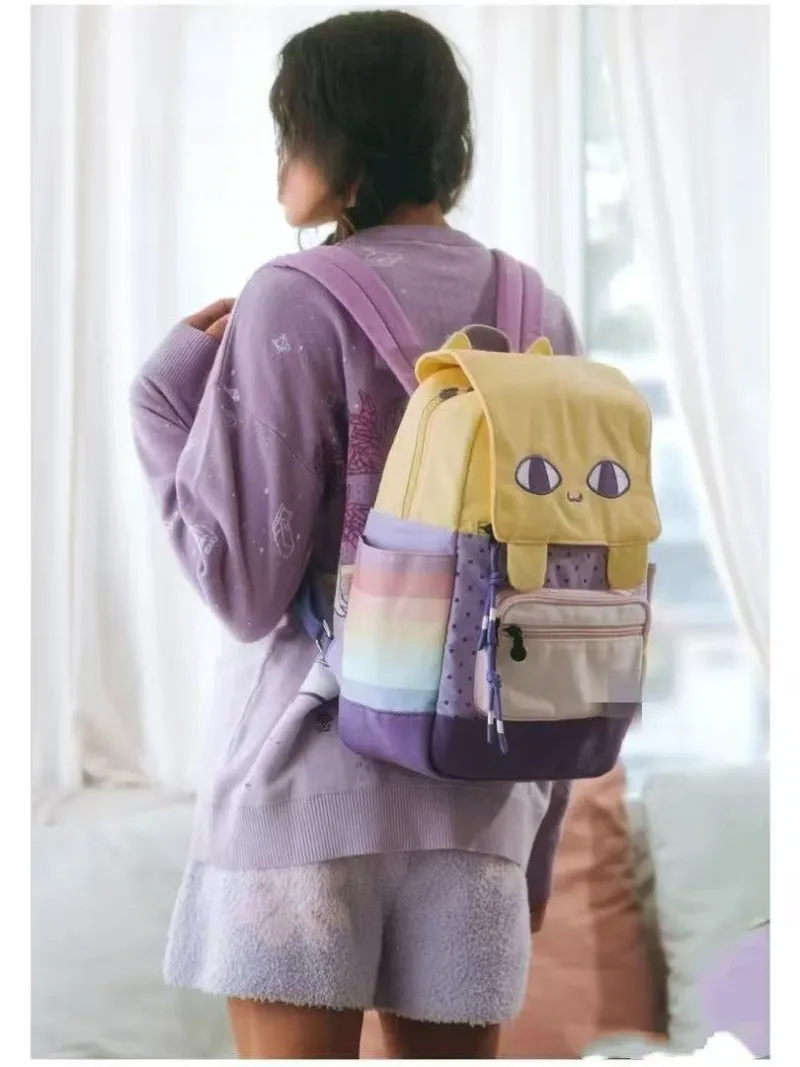 Pequeno gato amarelo grande capacidade mochila leve dos desenhos animados bonito leve sujo-resistente mochila para mulher