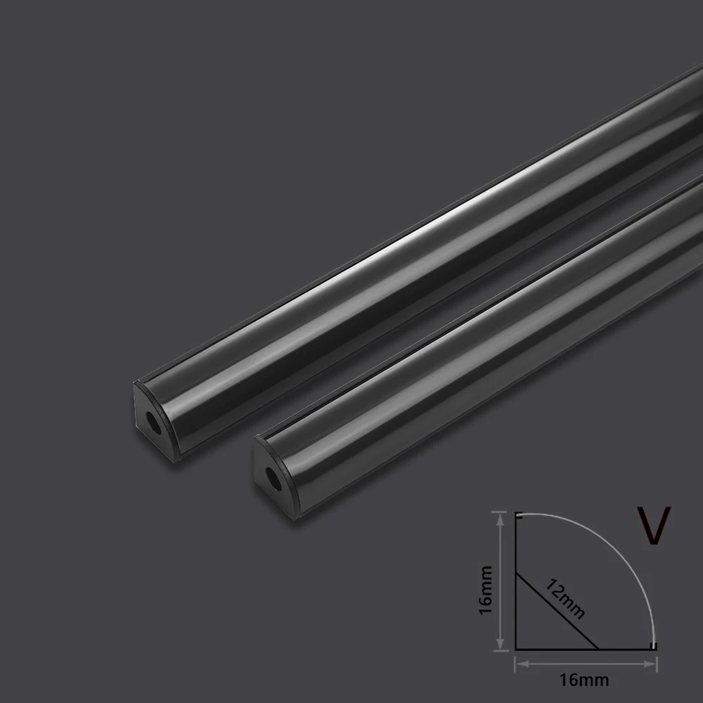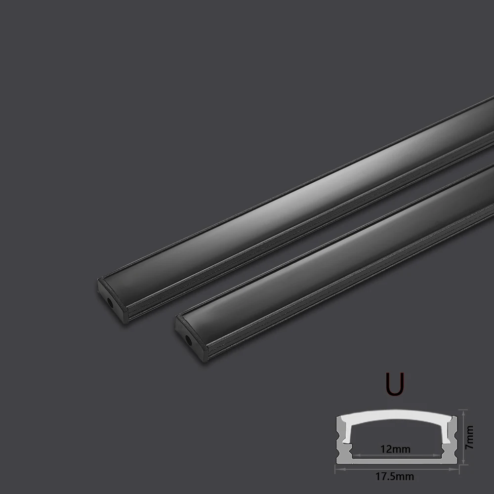 Perfil de alumínio LED com capa preta, barra de LED de 50cm, fita de luz LED, perfil de alumínio para interior de casa, teto, parede, canto.