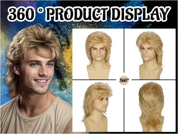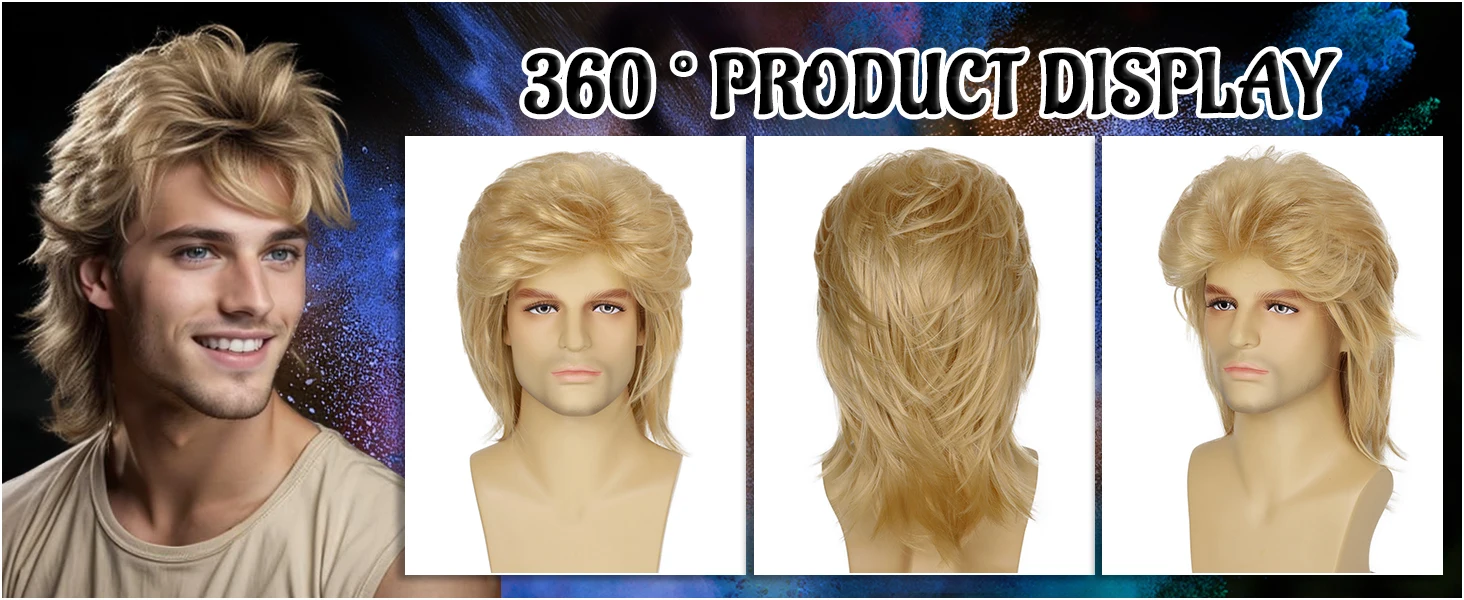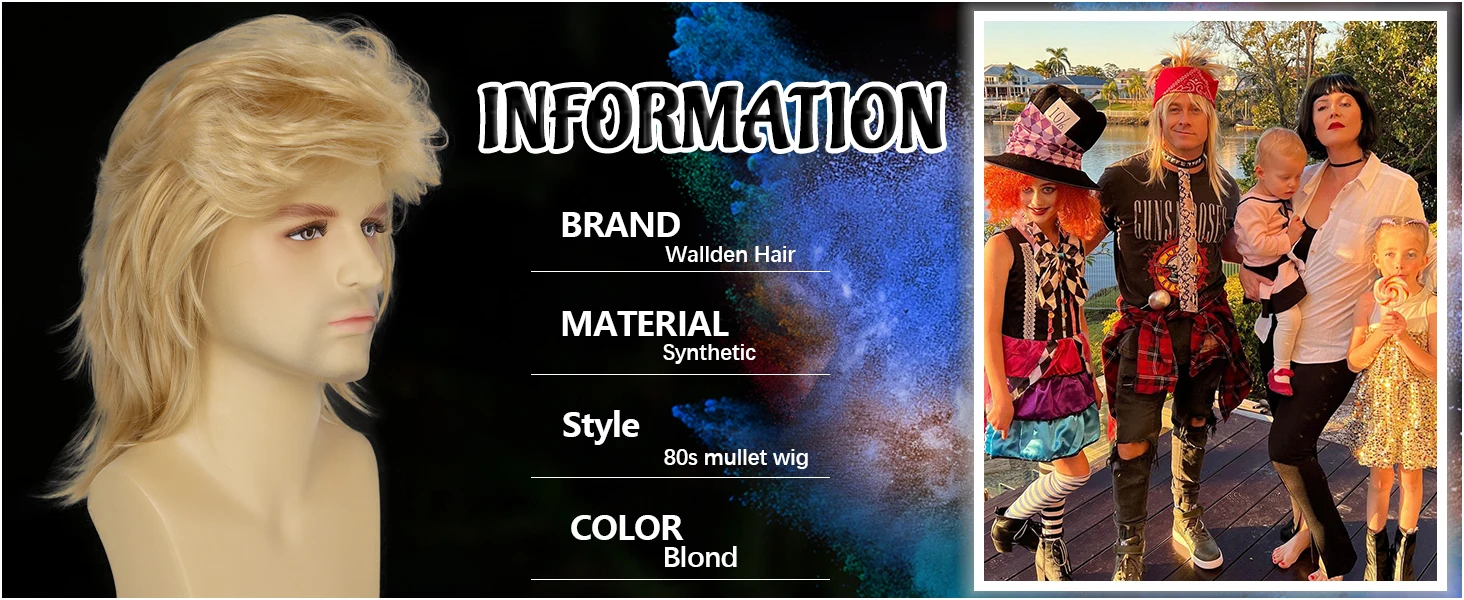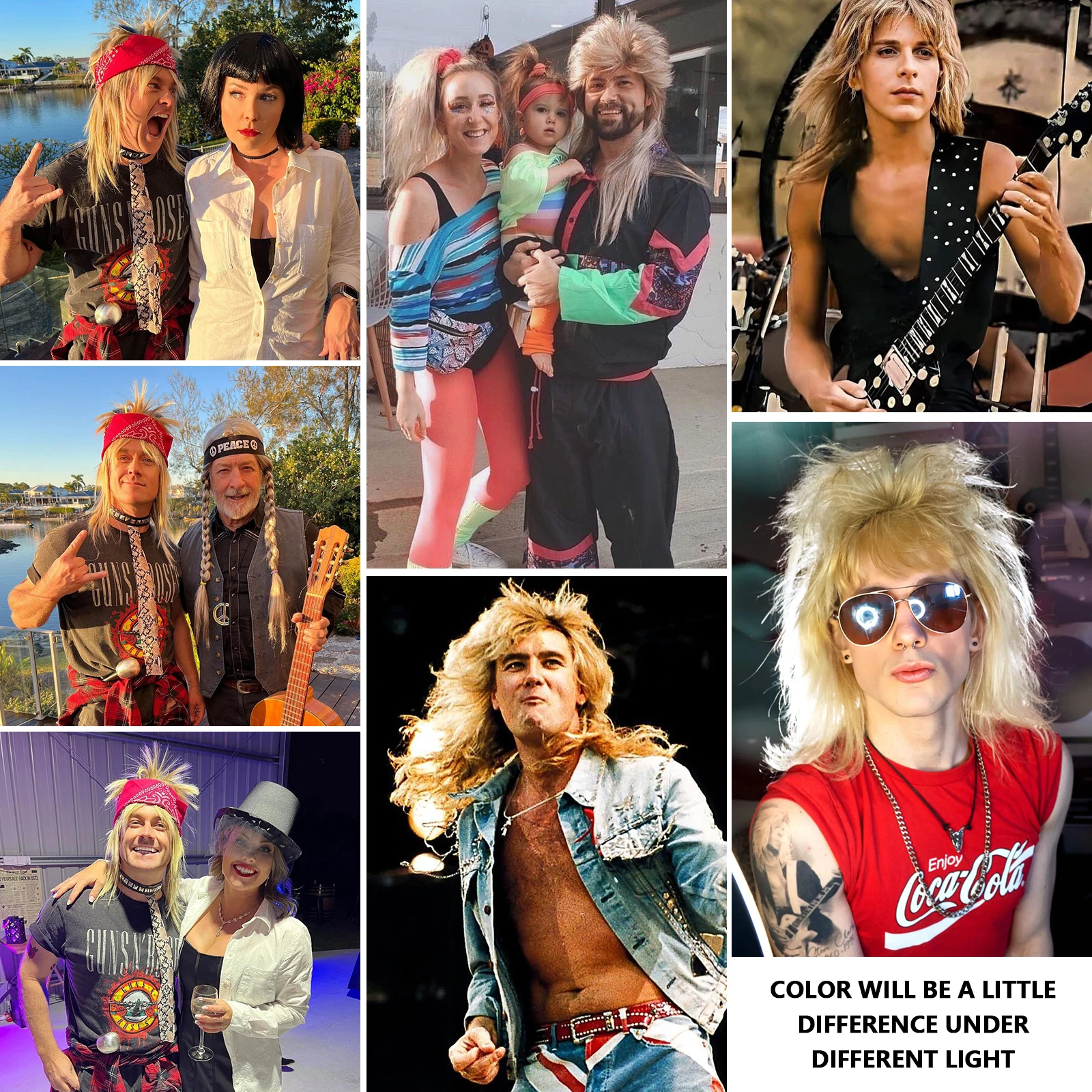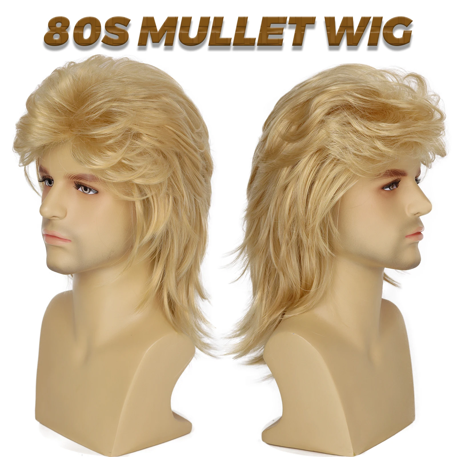 - > Peruca de tainha para homens 70s 80s fantasia festa peruca longa loira encaracolado punk rocker peruca sintética trajes de halloween para homens