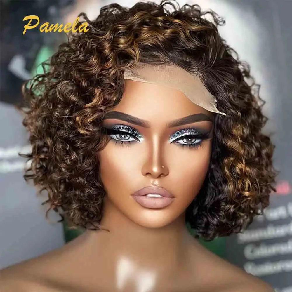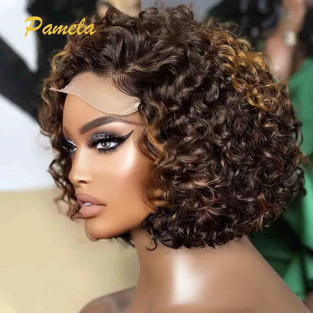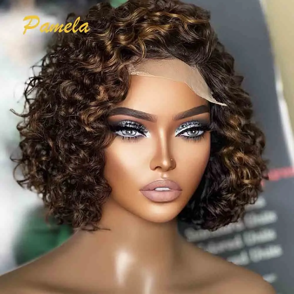 Peruca loira curta destaque bob perucas sem cola cabelo humano pronto para usar 250 densidade curto encaracolado marrom colorido perucas de cabelo humano