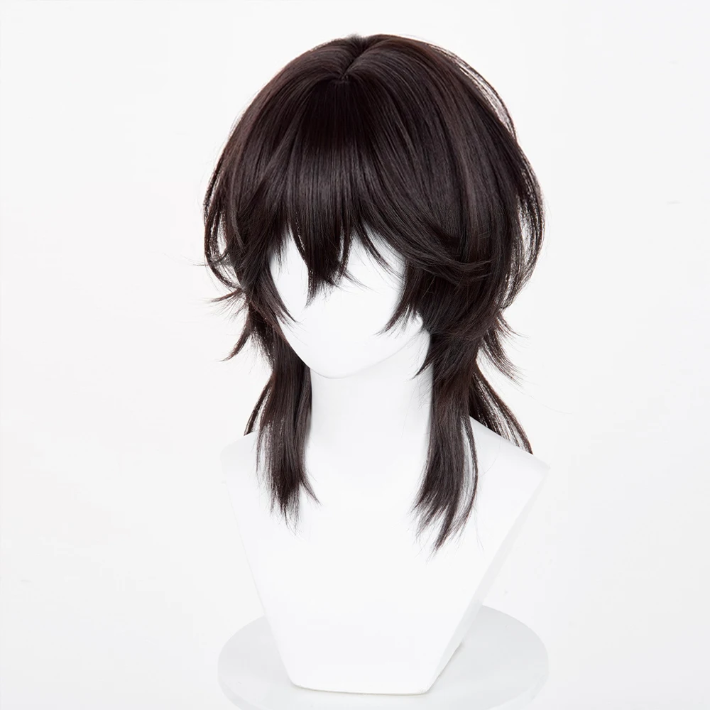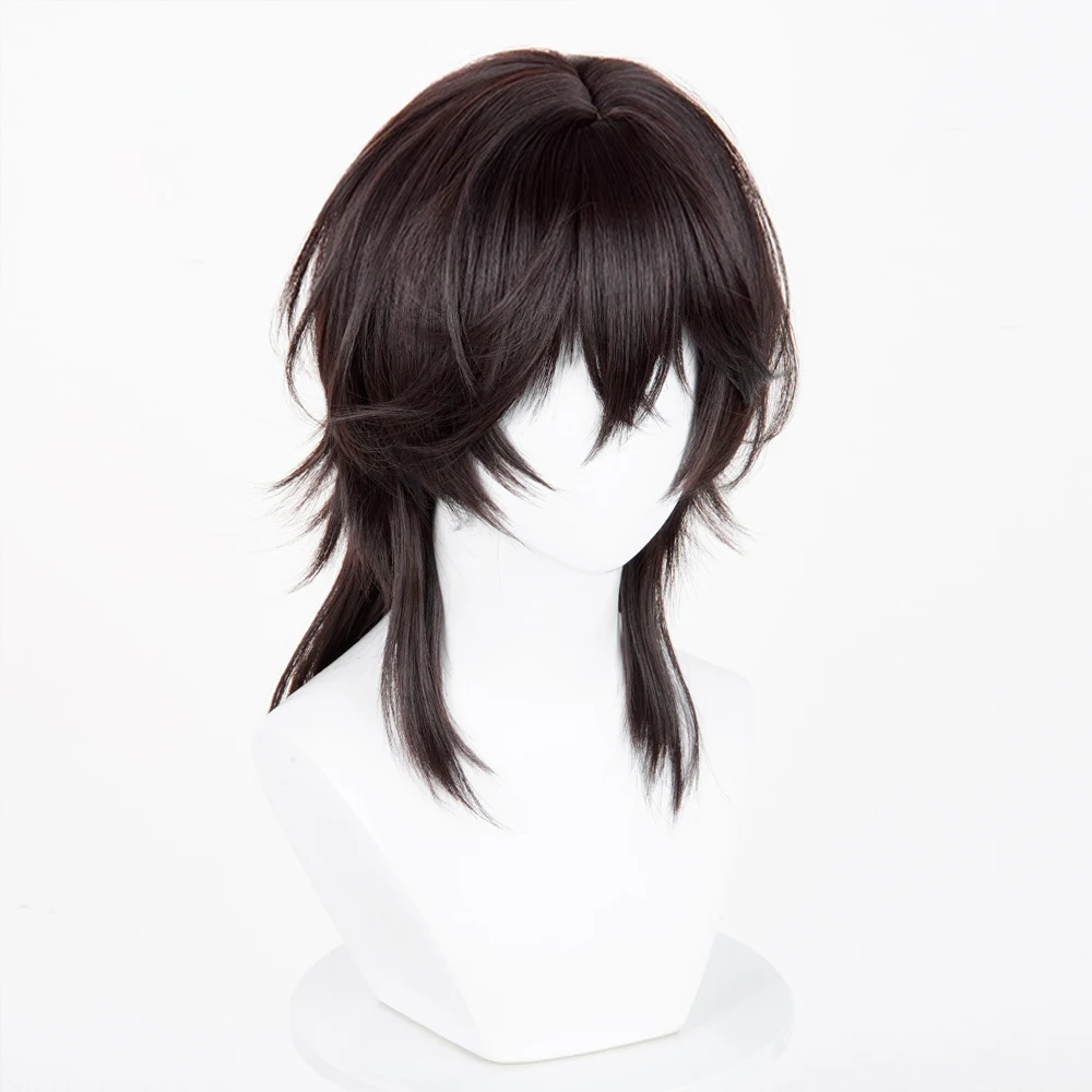 - > Peruca sintética longa e reta com cabeça de tainha marrom com franja fofa anime jogo cosplay peruca para festa diária