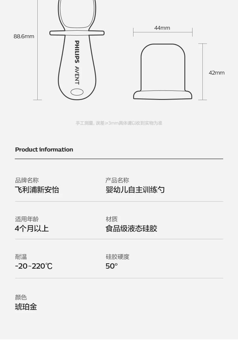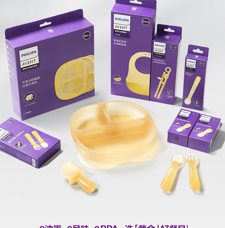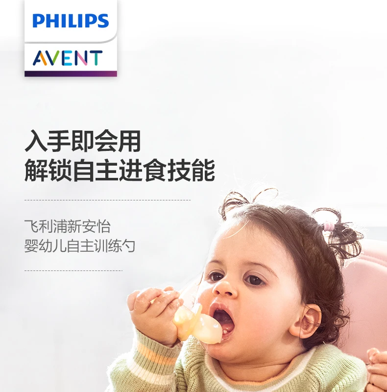 - > PHILIPS AVENT sílica gel Colher de comida complementar Bebê recém-nascido Aprenda a comer treinar colher macia Talheres infantis antiderrapantes