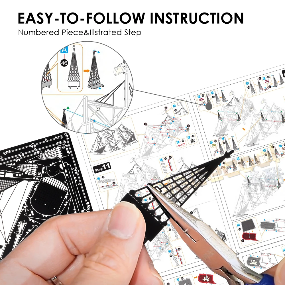 Piececool 3d metal quebra-cabeça blocos de construção modelo pérola preta diy montar brinquedo de quebra-cabeça, presentes de aniversário de natal para adultos