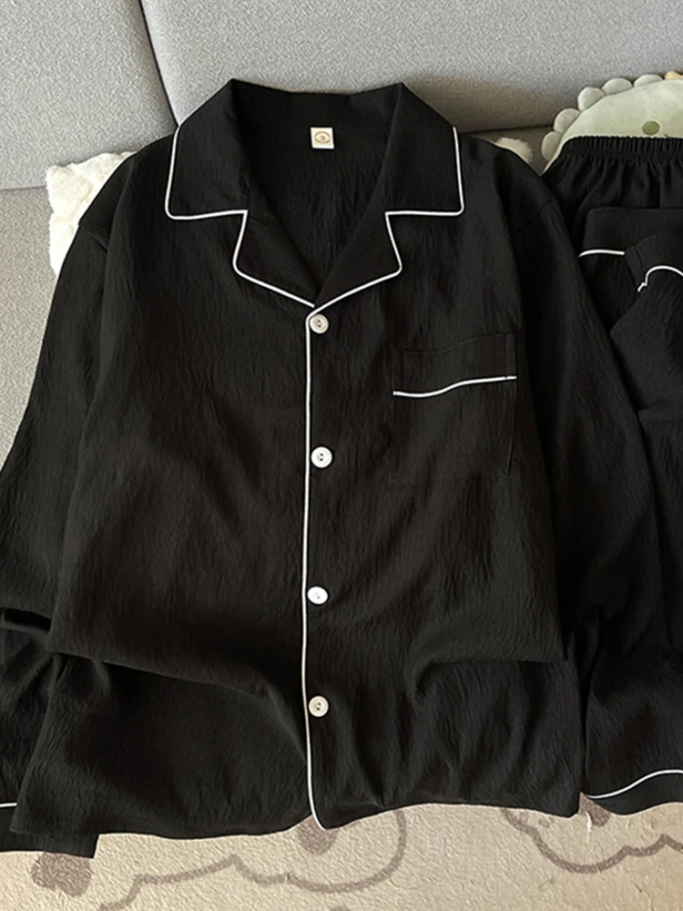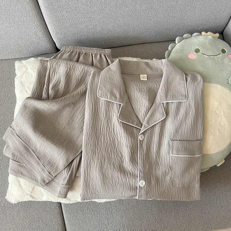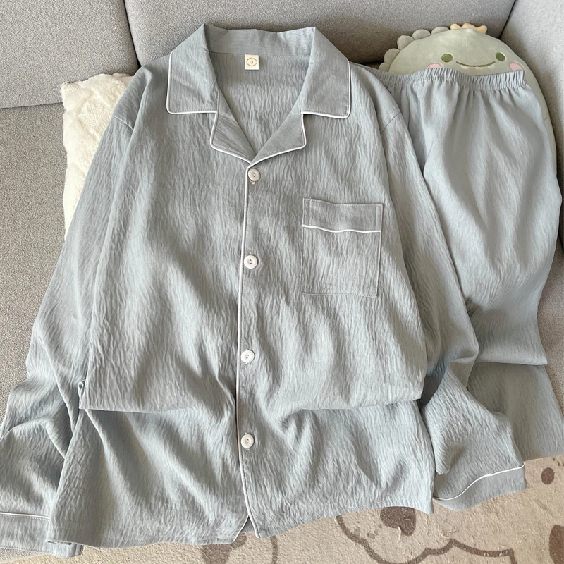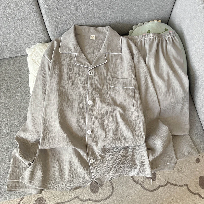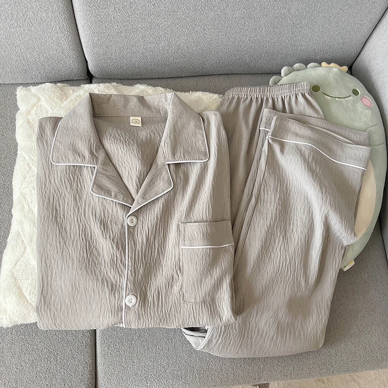 - > Pijama de Aodão Nuvem Masculino de Manga Crida e Calça, Roupa Casual para Casa, Estilo Primavera Outono, Cor Sólida Simp...