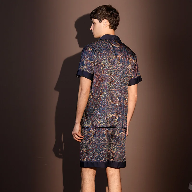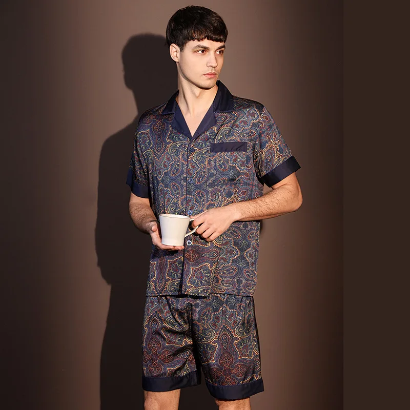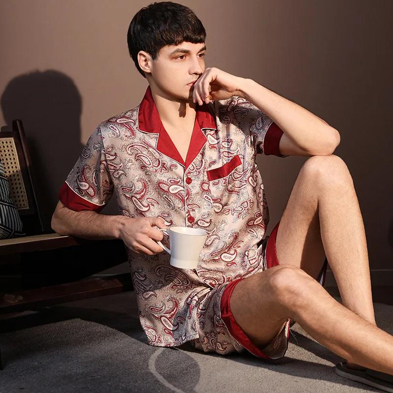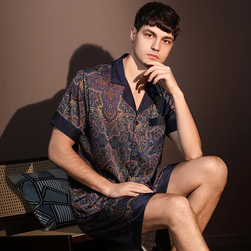 - > Pijamas de alta qualidade terno dos homens verão manga curta shorts de seda gelo pijamas masculino verão tamanho grande simples casual loungewear conjunto