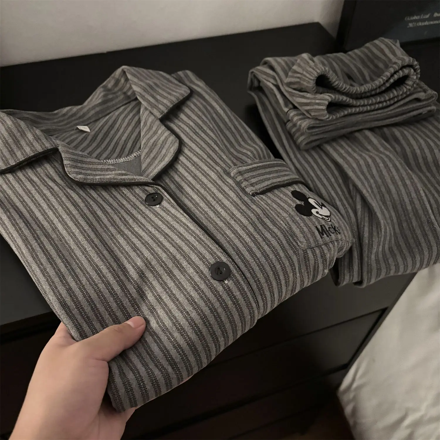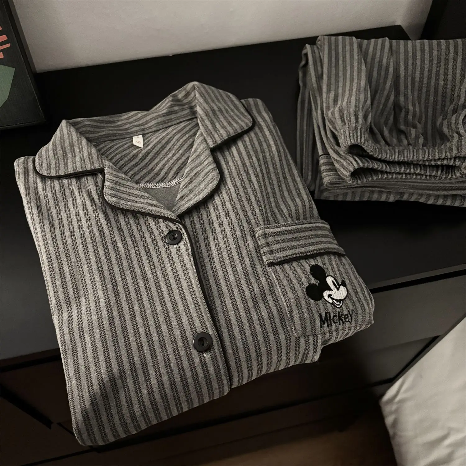 Com um design elegante, este conjunto de pijamas também pode ser usado fora de casa, tornando-o versátil e prático.